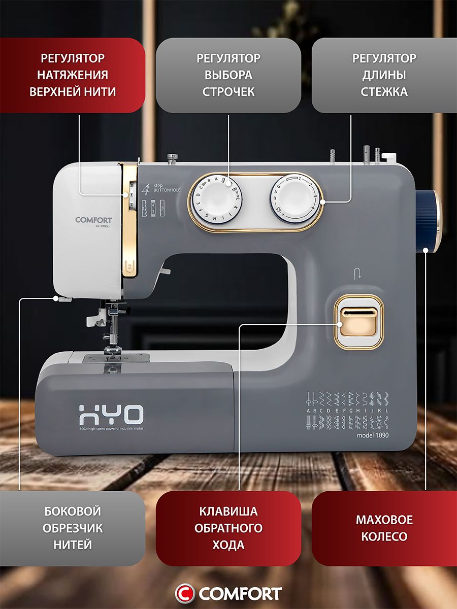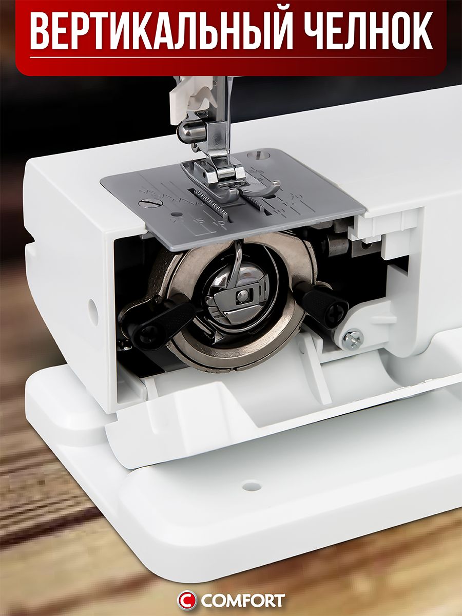 Функциональные особенности швейного оборудования Подсветка рабочей зоны,Реверс,Регулятор длины стежка