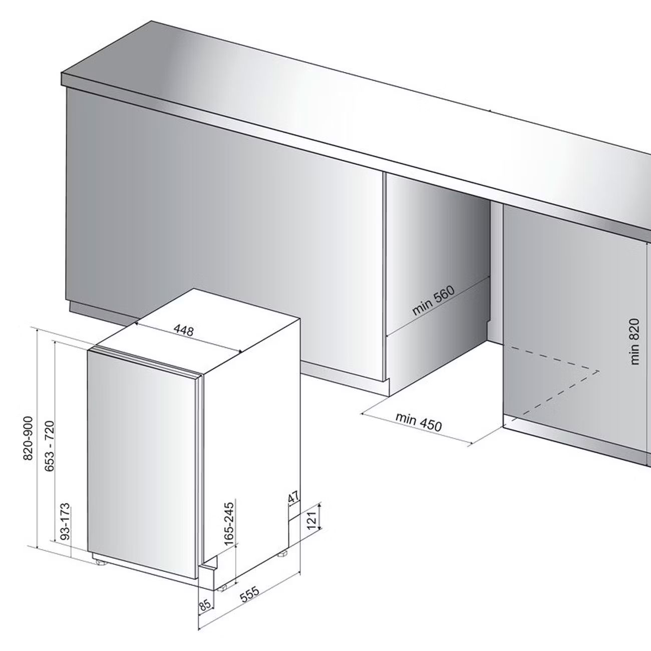 Размер (ДхШхВ), см - 55.5*44.8*82; Вместимость, комплектов - 10; Автоматических программ - 7; Класс энергопотребления - A; Управление - Электронное; Макс. уровень шума, дБ - 47; Отложенный старт, ч - 12; Тип - Посудомоечная машина; Цвет - Серебристый; Вид посудомоечной машины - Узкая (45 см); Тип сушки - Конденсационная; Потребляемая мощность, Вт - 1900; Расход энергии за цикл, кВт - 0.74; Время м