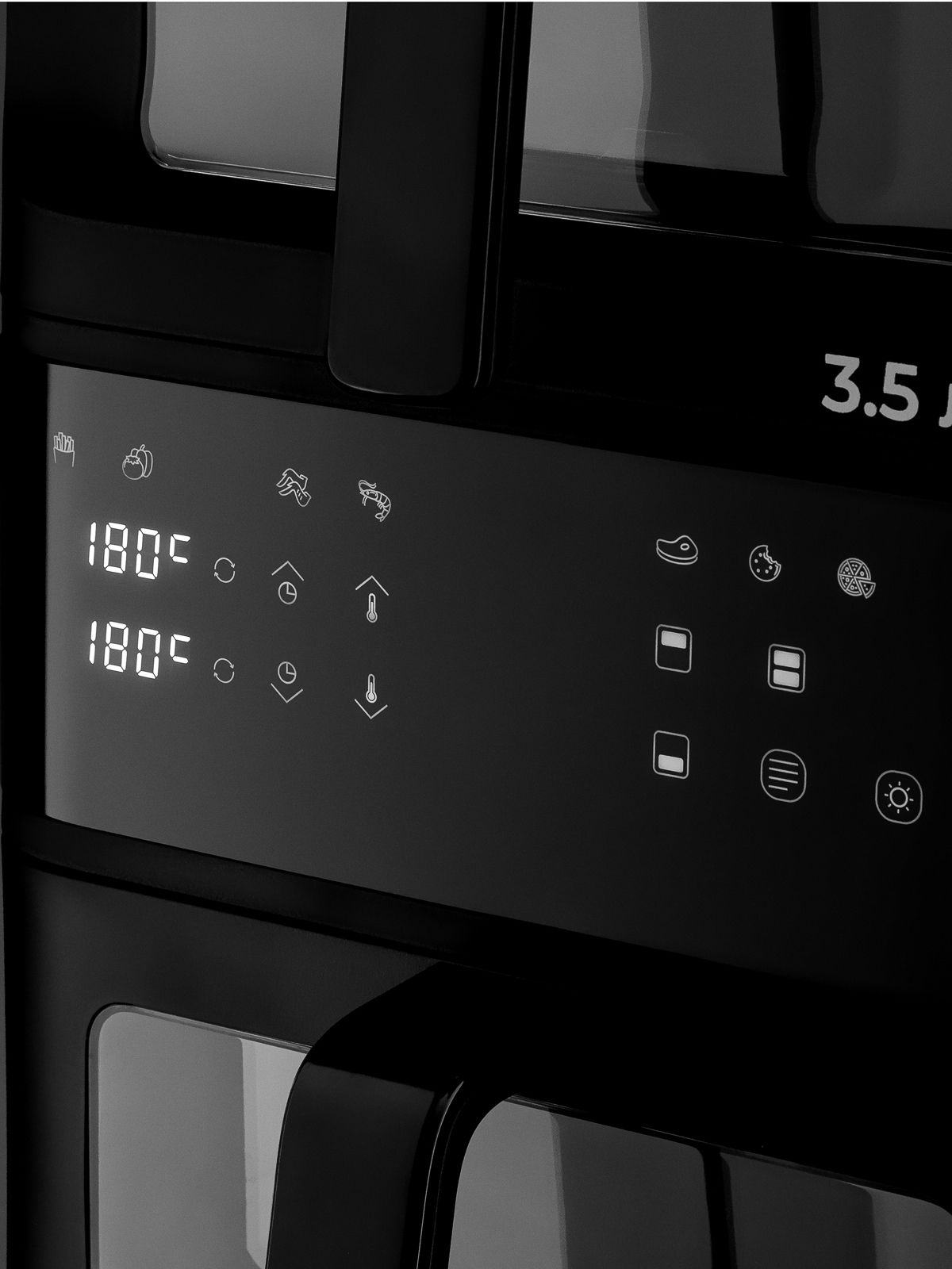 Мощность, Вт - 2500; Управление со смартфона - Нет; Автоматических программ - 10; Тип - Аэрогриль; Цвет - Черный; Объем, л - 10; Макс. температура нагрева, °С - 200; Мин. температура нагрева, °С - 80; Тип нагревателя аэрогриля - ТЭН; Особенности аэрогриля - Автоматические программы; Функционал аэрогриля - Аэрогриль; Программы приготовления - Жарка,Запекание,Гриль; Тип управления - Сенсорное; Управ