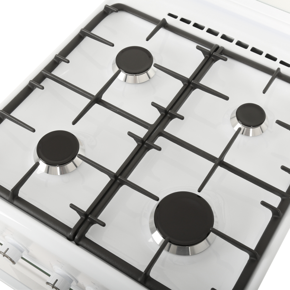 Тип конфорок - Газовые; Тип духовки - Газовый; Вид электроподжига - Автоматический; Ширина плиты, см - 50; Глубина плиты, см - 58.5; Объем духовки, л - 52; Высота, см - 85; Тип управления - Механическое; Материал решеток - Чугун; Материал рабочей поверхности - Эмалированная сталь; Тип - Плита; Цвет - Белый; Тип панели (плиты) - Газовая; Внутреннее покрытие - Эмаль; Количество конфорок - 4; Количес