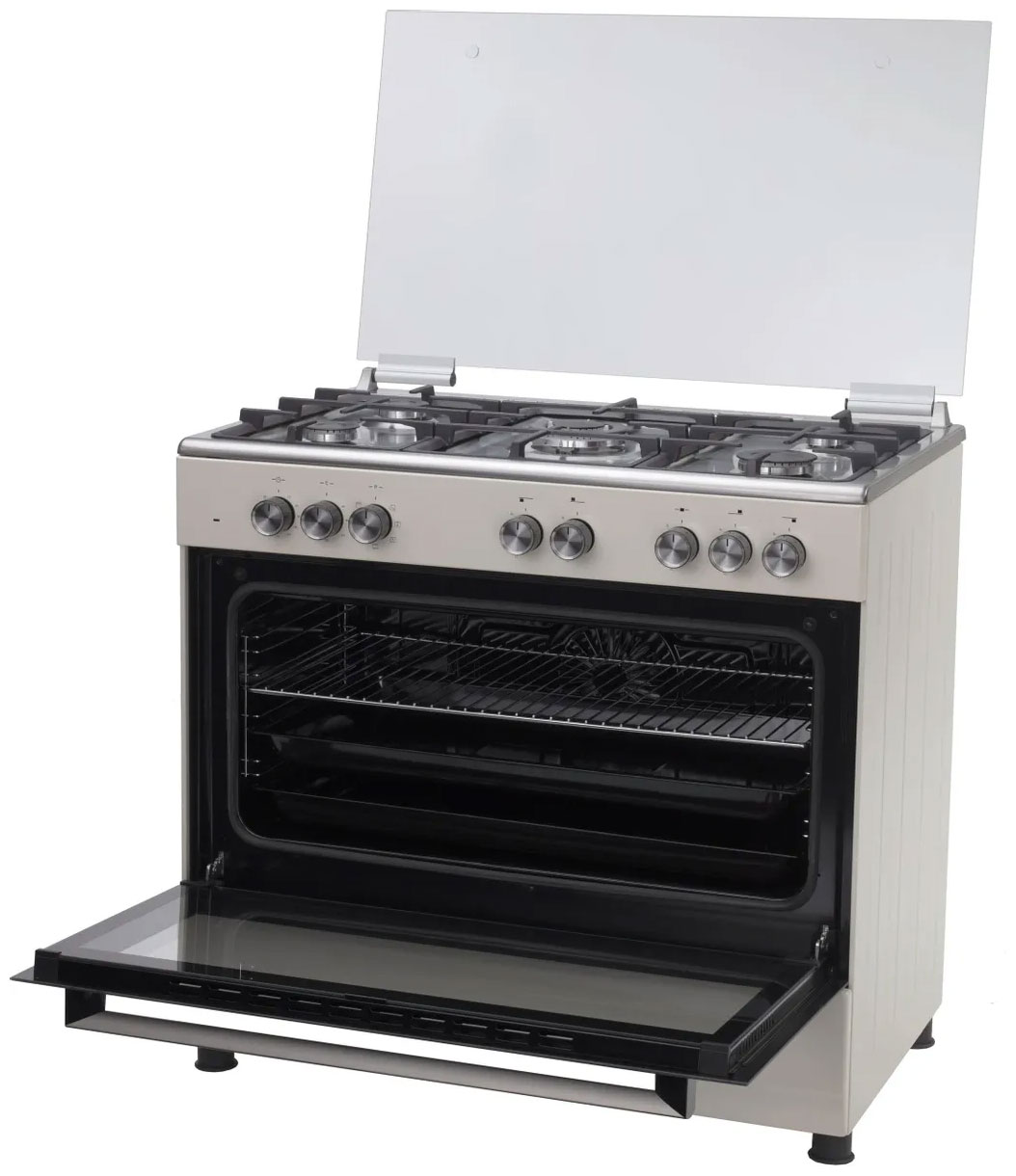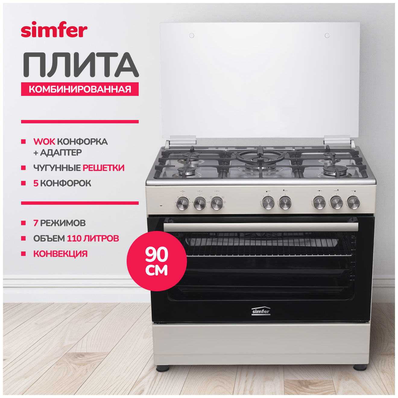 Тип конфорок - Газовые; Тип духовки - Электрический; Вид электроподжига - Автоматический; Ширина плиты, см - 90; Глубина плиты, см - 60; Объем духовки, л - 110; Высота, см - 78.7; Тип управления - Механическое; Материал решеток - Чугун; Материал рабочей поверхности - Нержавеющая сталь; Тип - Плита; Цвет - Бежевый; Потребляемая мощность, Вт - 3500; Тип панели (плиты) - Комбинированная; Тип гриля -
