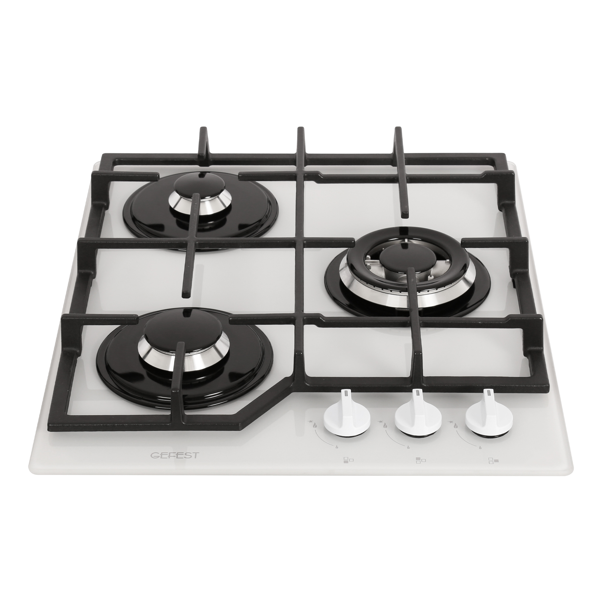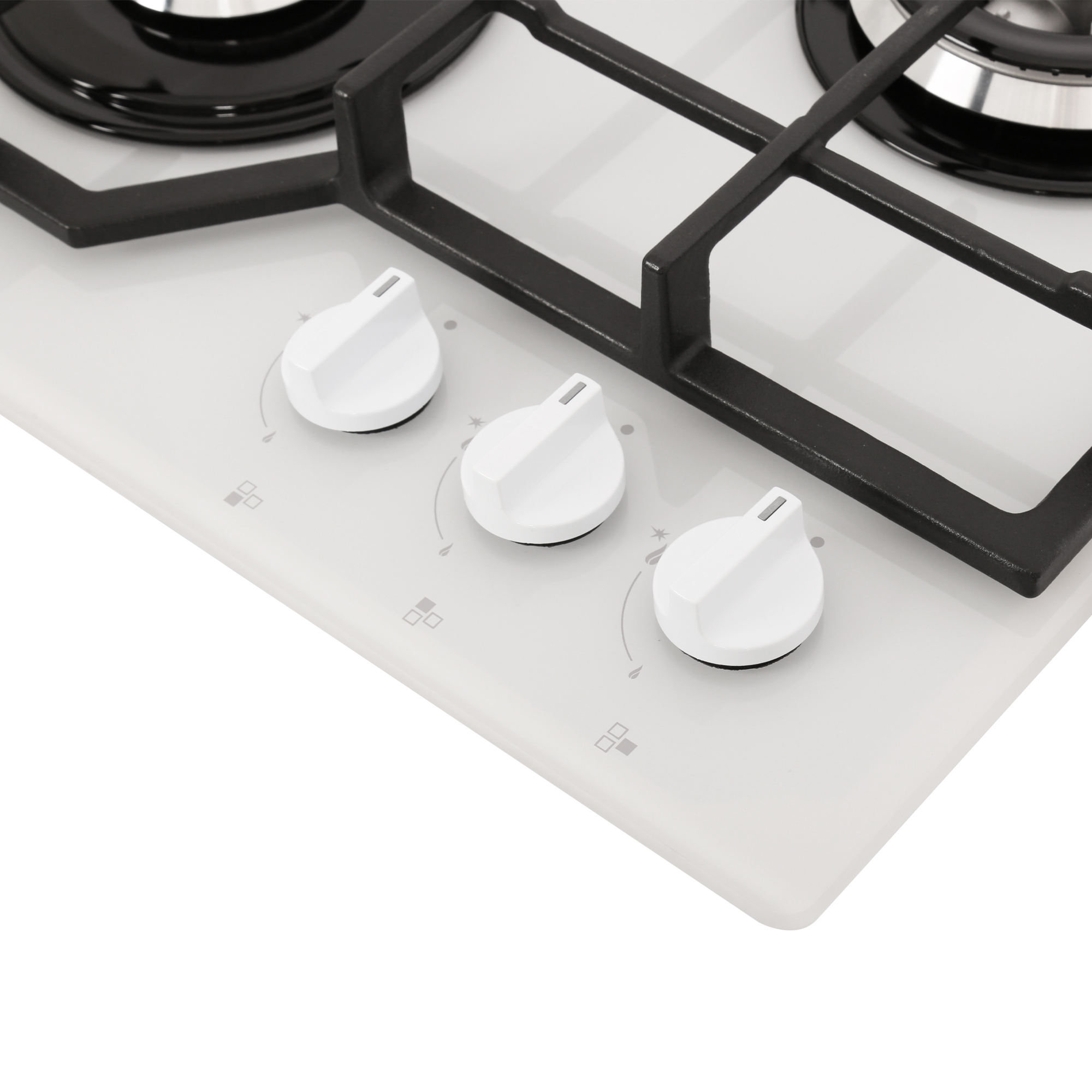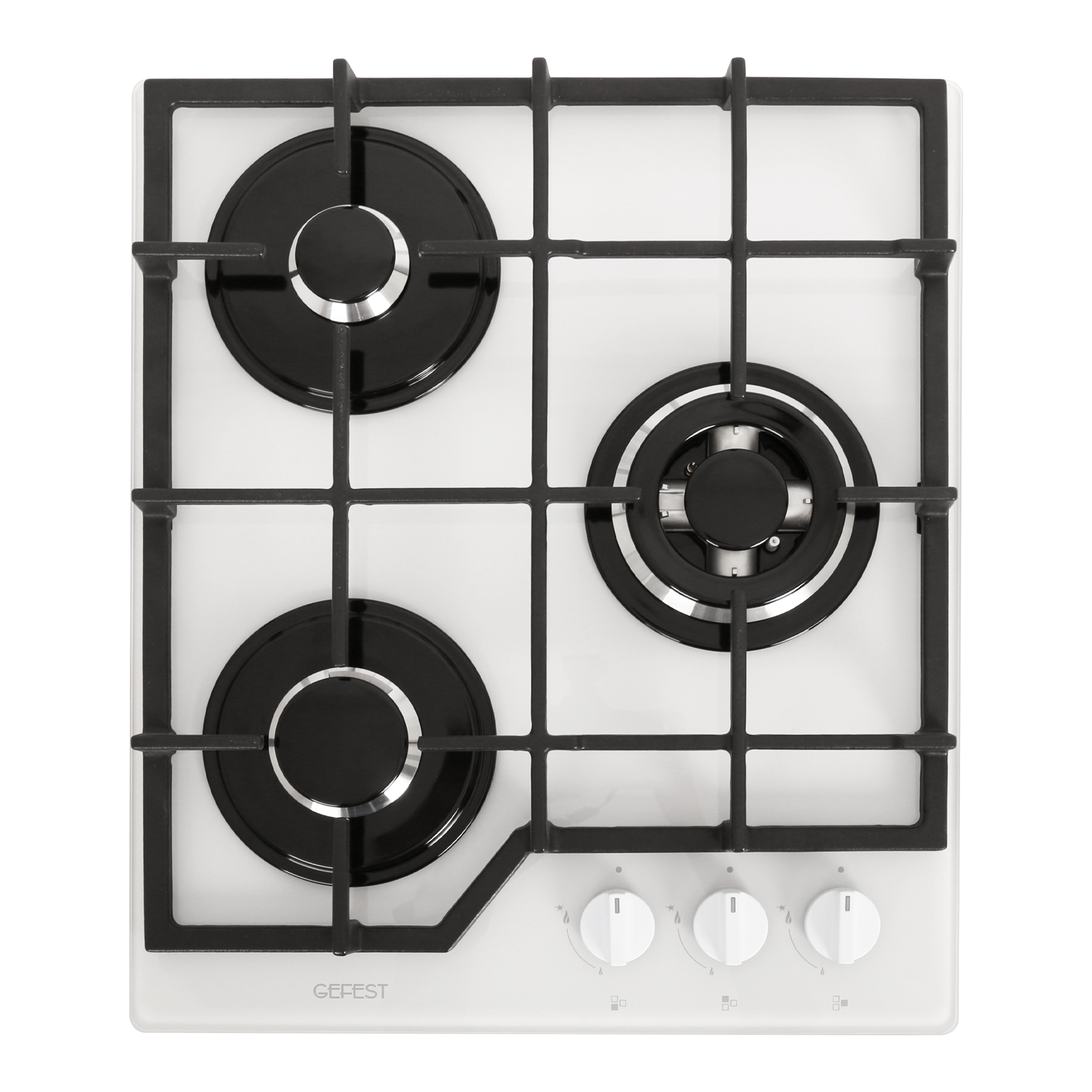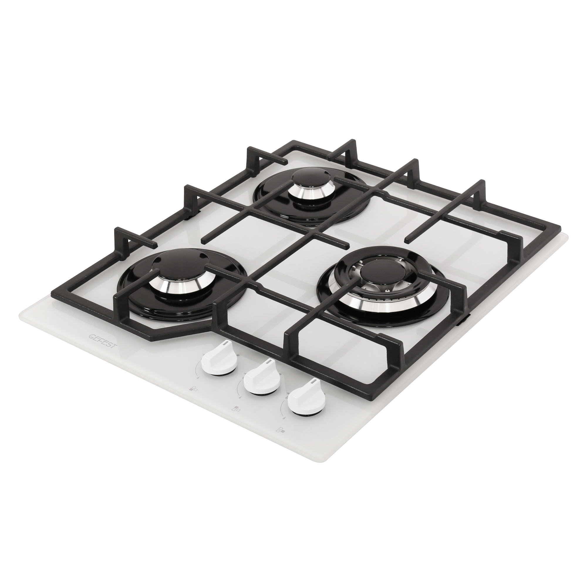 Тип панели (плиты) - Газовая; Количество конфорок - 3; Материал рабочей поверхности панели - Закаленное стекло; Конструкция панели - Независимая; Тип управления - Механическое; Тип - Варочная панель; Цвет - Белый; Ширина, см - 45; Глубина, см - 52.5; Размеры ниши для встраивания панели, мм - 406x486; Ширина встраивания, см - 40.6; Глубина встраивания, см - 48.6; Установка - Стандартная; Материал р