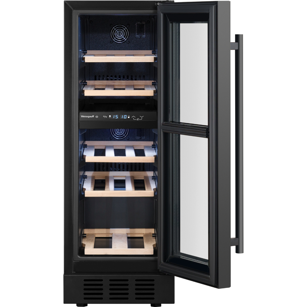 Общий объем, л - 56; Количество бутылок, шт - 16; Размеры, мм (ШхГхВ) - 295х570х817; Класс энергопотребления - G; Количество камер - 1; Тип - Встраиваемый винный шкаф; Цвет - Черный; Количество температурных зон - 2; Тип охлаждения - Компрессорный; Особенности холодильника - Дисплей; Системы защиты - Блокировка от детей; Управление - Электронное; Количество дверей - 1; Количество полок - 5; Ширина