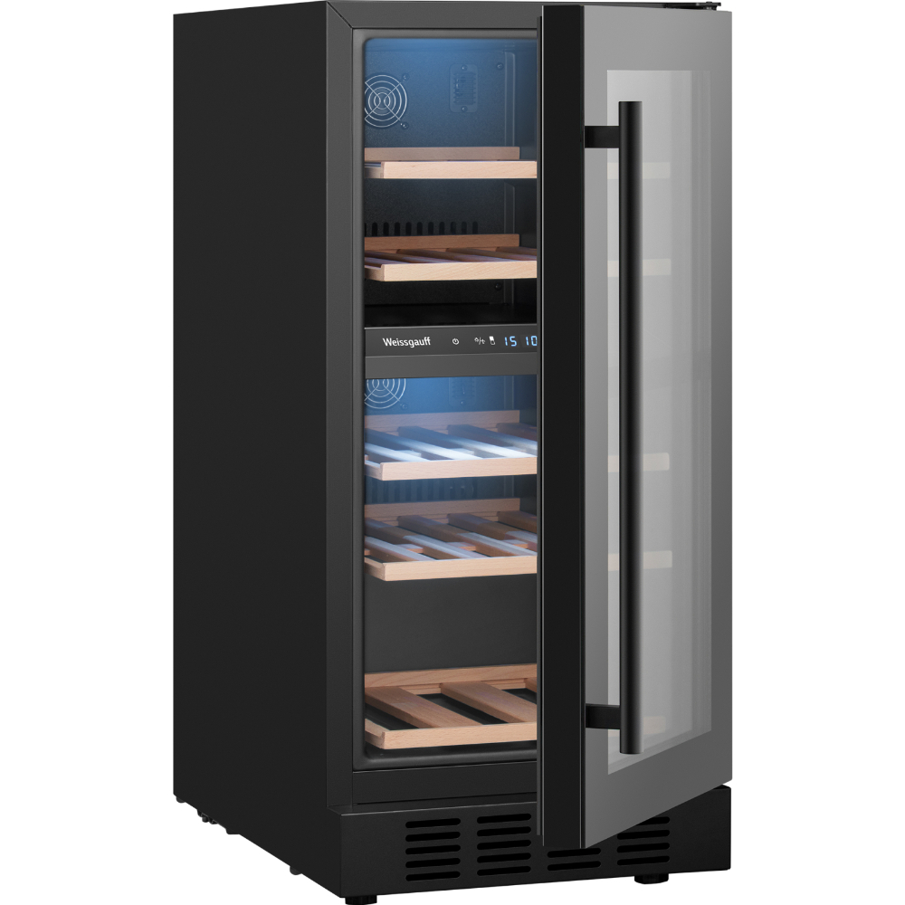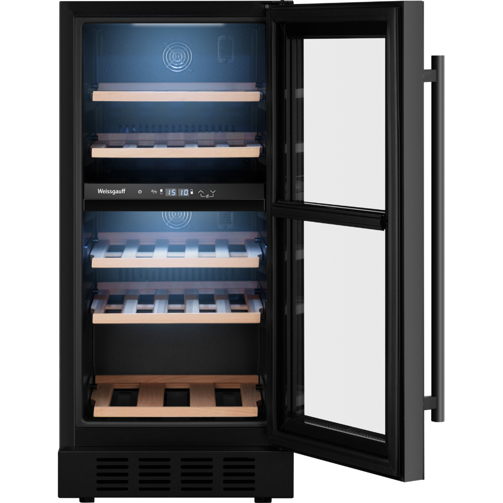 Общий объем, л - 72; Количество бутылок, шт - 26; Размеры, мм (ШхГхВ) - 380х570х817; Класс энергопотребления - G; Макс. уровень шума, дБ - 39; Количество камер - 1; Тип - Встраиваемый винный шкаф; Цвет - Черный; Количество температурных зон - 2; Тип охлаждения - Компрессорный; Особенности холодильника - Дисплей; Системы защиты - Блокировка от детей; Управление - Электронное; Количество дверей - 1;