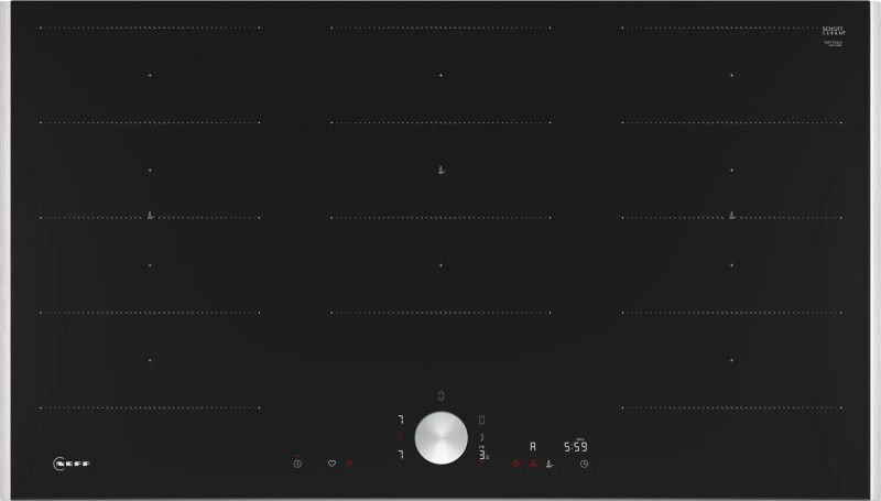 Тип панели (плиты) - Индукционная; Количество конфорок - 5; Материал рабочей поверхности панели - Стеклокерамика; Конструкция панели - Независимая; Индикация - Остаточное тепло; Тип управления - Электронно-механическое; Тип - Варочная панель; Цвет - Черный; Мощность варочной панели, Вт - 11100; Ширина, см - 93; Глубина, см - 52.7; Установка - Стандартная; Особенности варочной панели - Сенсор налич