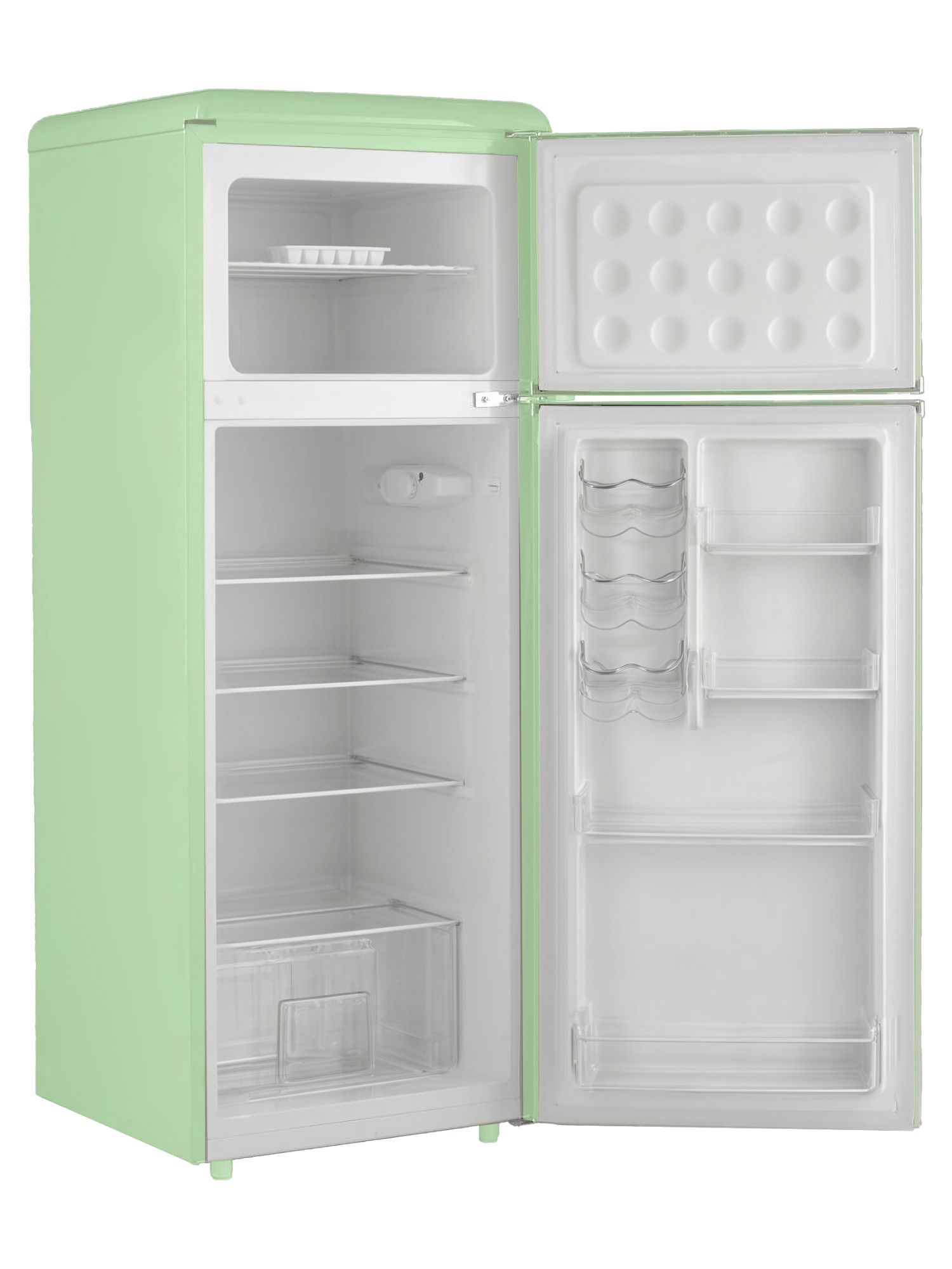 Общий объем, л - 212; Размеры, мм (ШхГхВ) - 545x570x1450 мм; Размораживание - Капельная система; Общий объем холодильной камеры, л - 167; Класс энергопотребления - A+; Общий объем морозильной камеры, л - 45; Макс. уровень шума, дБ - 43; Количество камер - 2; Климатический класс - SN-ST +10°C / +38°C; Открывание дверей - Вправо; Тип - Холодильник; Цвет - Светло-зеленый,хром; Годовое потребление, кВ