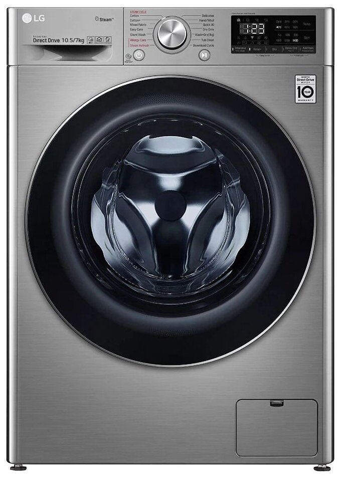 Тип загрузки - фронтальная; Максимальная загрузка белья - 10 кг; Сушка - есть; Инверторный двигатель - да; Программы - быстрая стирка, дополнительное полоскание, предварительная стирка, стирка деликатных тканей, стирка смешанных тканей, стирка хлопка, стирка шерсти; Подача пара - есть; Тип управления - сенсорное; Расход воды за стирку - 62 л; Высота - 85 см; Глубина - 56 см; Ширина - 60 см; Вес -