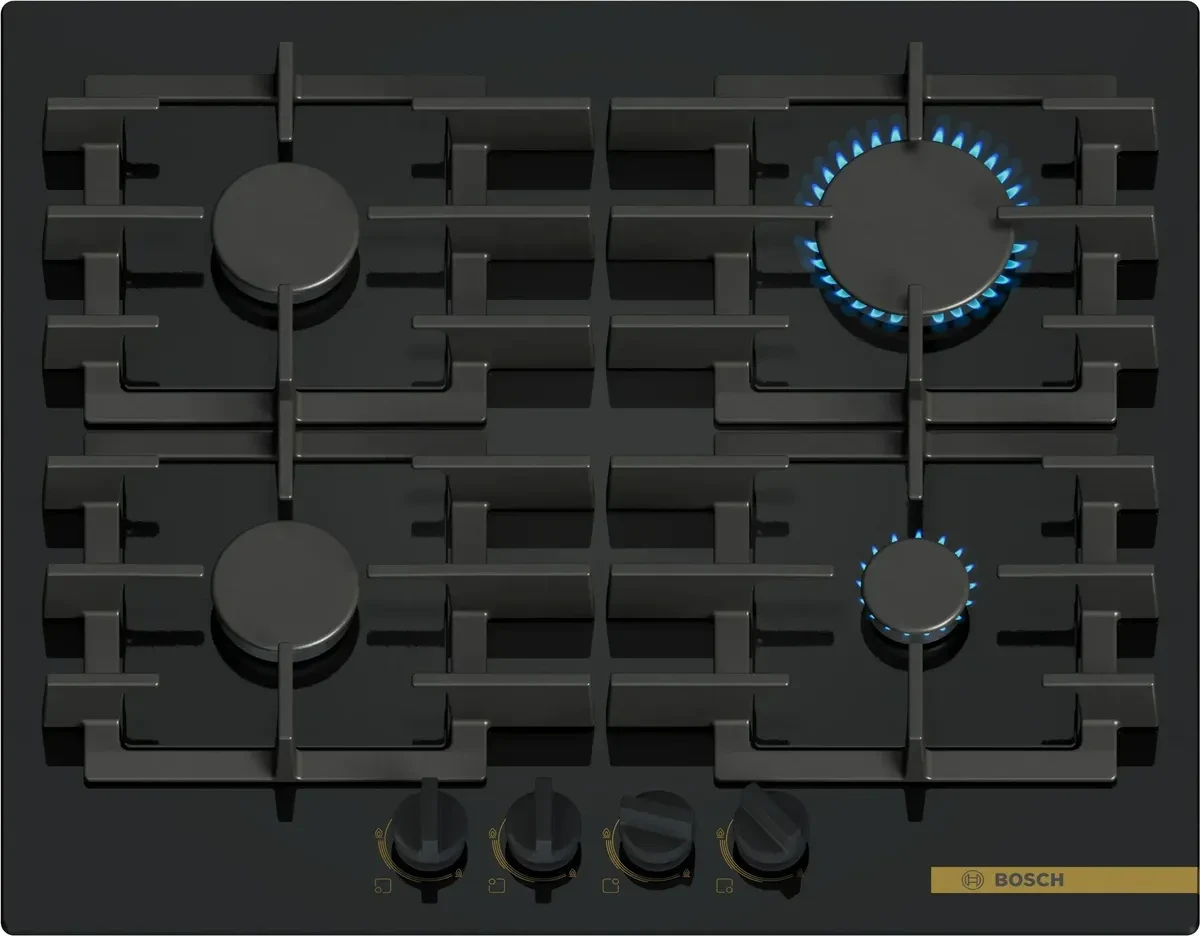 Цвет - черный; Материал поверхности - закаленное стекло; Общее количество конфорок - 4; Суммарная мощность газовых конфорок - 7.5 кВт; Размеры (ШхГхВ) - 590х520х45 мм; Материал решетки - чугун; Электроподжиг - в ручке (автоматический); Управление - механическое; Газ-контроль - есть; Расположение панели управления - спереди; Тип панели - газовая; - ; - ; - ; - ; - ;