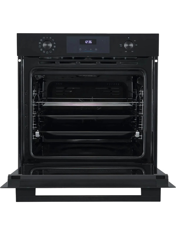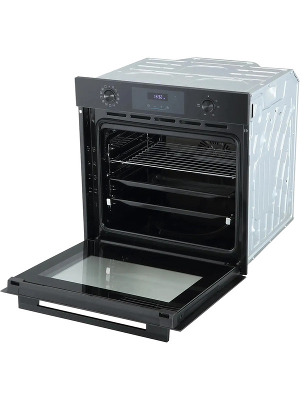 Объем духовки, л - 72; Тип установки - Независимая; Тип питания - Электрический; Управление духовкой - Таймер,Утапливаемые переключатели; Особенности духовки, плиты - Вентилятор охлаждения; Системы защиты - Автоотключение; Тип - Духовой шкаф; Цвет - Черный; Потребляемая мощность, Вт - 2050; Класс энергоэффективности - A++; Макс. температура, °С - 280; Телескопические направляющие духовки - Да; Тел