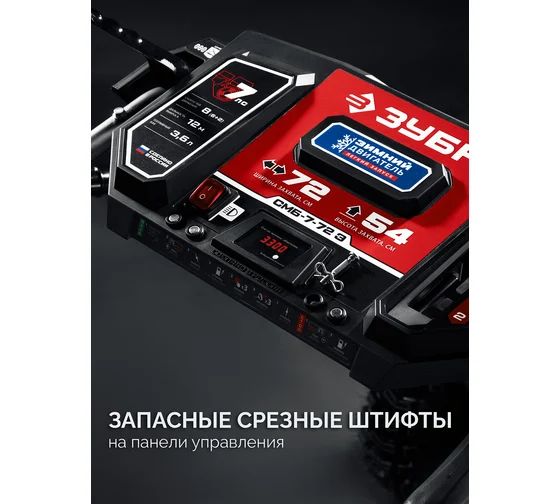 Тип - Снегоуборщик; Ширина обработки, см - 72; Дальность выброса снега, м - 12; Тип передвижения - Колеса; Материал шнека - Металл; Мощность, л.с. - 7.01; Тип двигателя - Бензиновый; Тип питания - Бензиновый двигатель; Объем двигателя, куб.см - 212; Объем топливного бака, л - 3.6; Режим КПП - 6+2; Оснастка - Снегоотбрасыватель; Особенности - Колеса,Фонарь,Электростартер; Самоходность - Да; Вес, кг