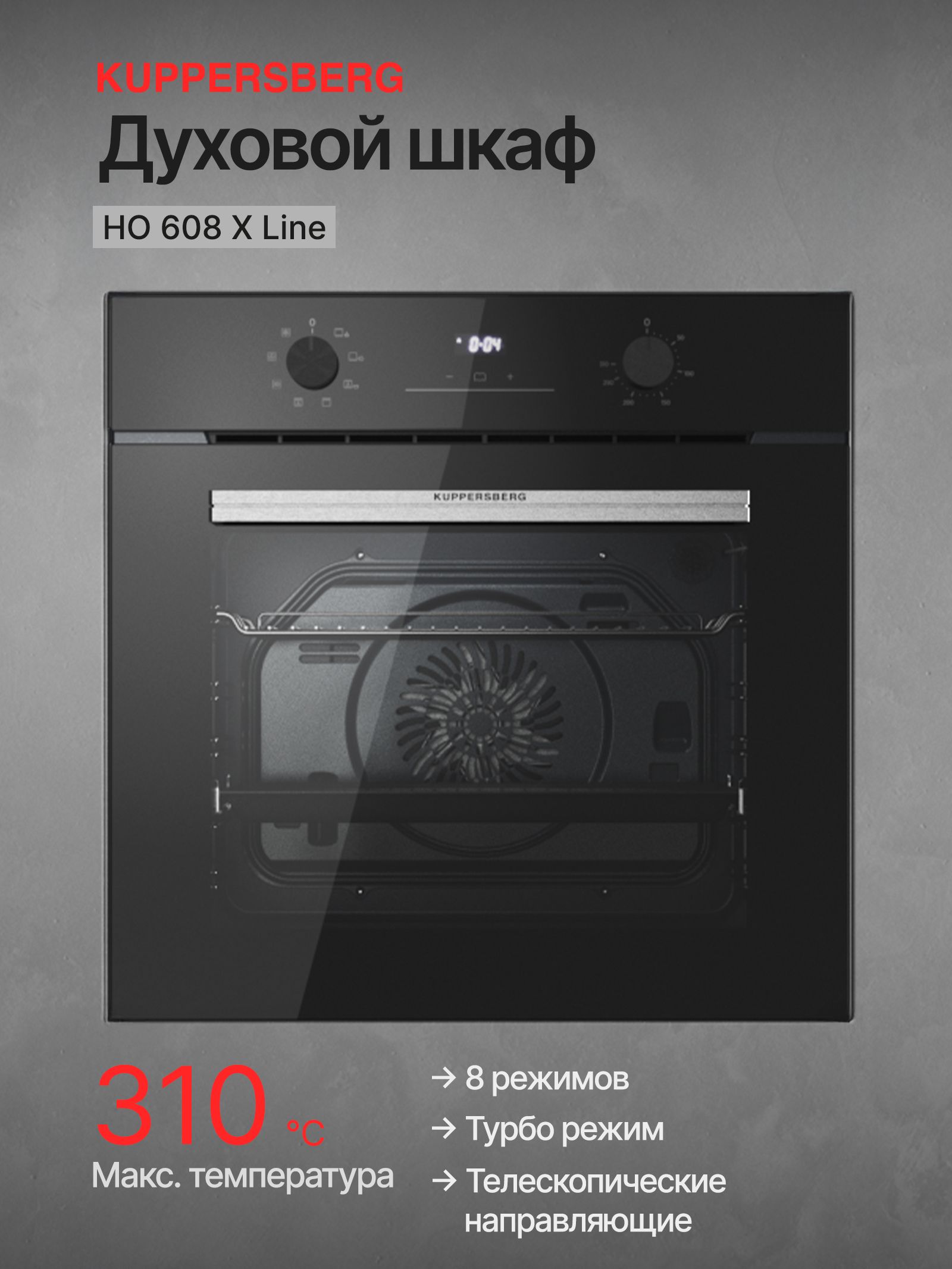 Объем духовки, л - 78; Тип установки - Независимая; Тип питания - Электрический; Количество режимов работы - 8; Управление духовкой - Дисплей; Внутреннее покрытие - Эмаль; Особенности духовки, плиты - Дисплей; Количество стекол дверцы духовки - 2; Системы защиты - Блокировка от детей; Тип - Духовой шкаф; Цвет - Черный,серый; Потребляемая мощность, Вт - 2660; Класс энергоэффективности - A; Макс. те