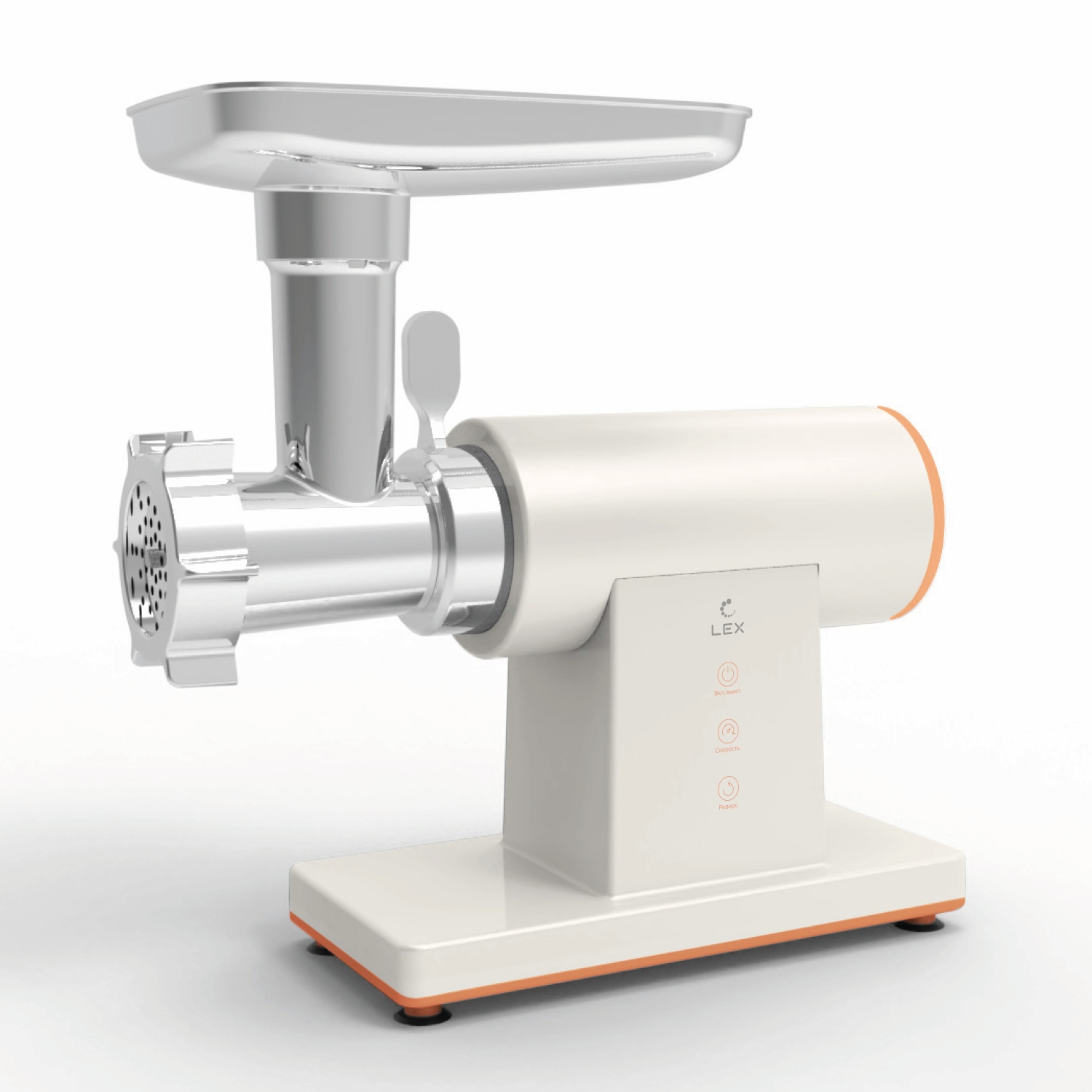 Производительность, кг/мин - 2.5; Мощность, Вт - 2000; Количество насадок - 6; Количество скоростей - 2; Реверс - Да; Материал корпуса - Пластик; Вид насадки - Для колбас/сосисок,Для фарша,Кеббе,Нож-измельчитель; Системы защиты - Защита от перегрева; Тип - Мясорубка электрическая; Цвет - Оранжевый,слоновая кость; Конструктивные особенности - Прорезиненные ножки; Длина шнура, м - 1; Размеры, мм - 3