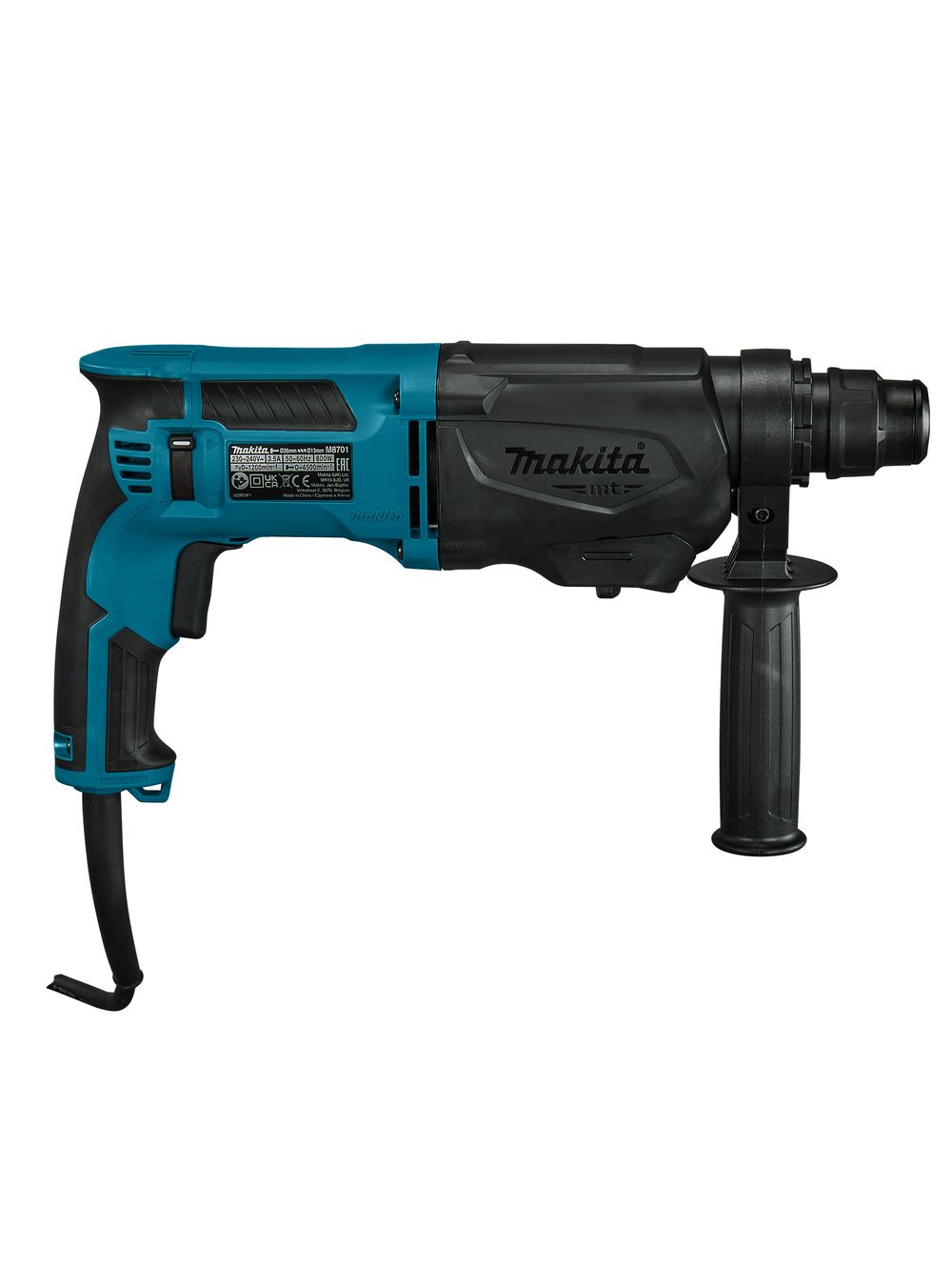 Тип - Перфоратор; Максимальная мощность, Вт - 800; Количество ударов, уд./мин - 4500; Макс. энергия удара, Дж - 2.3; Макс. обороты на 1ой скорости, об./мин - 1200; Макс. диаметр отверстия в стали, мм - 13; Макс. диаметр отверстия в бетоне, мм - 26; Макс. диаметр отверстия в дереве, мм - 32; Тип питания - От сети; Расположение двигателя - Горизонтальное; Режимы работы - Сверление с ударом; Тип патр