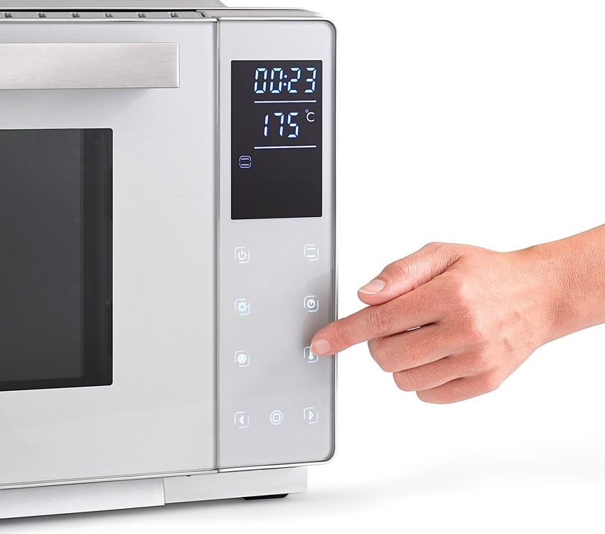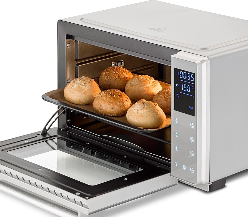 Объем духовки, л - 26; Потребляемая мощность, Вт - 1500; Таймер - Электронный; Управление мини-печью - Сенсорное; Внутреннее покрытие - Металл; Макс. температура, °С - 230; Тип - Мини-печь; Цвет - Белый; Тип питания - Электрический; Количество режимов работы - 9; Количество стекол дверцы духовки - 2; Размеры, мм - 350x200x300; Вес товара, г - 8250; Гарантийный срок - 2 года;