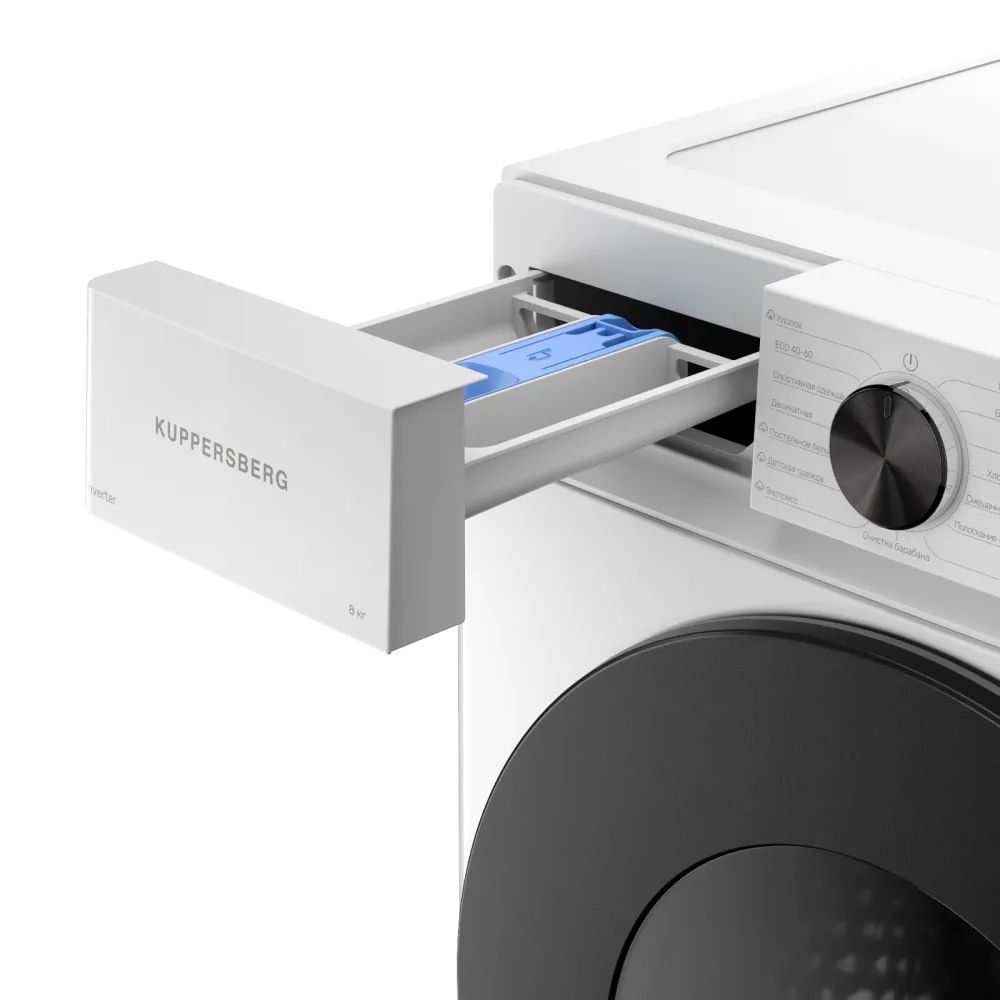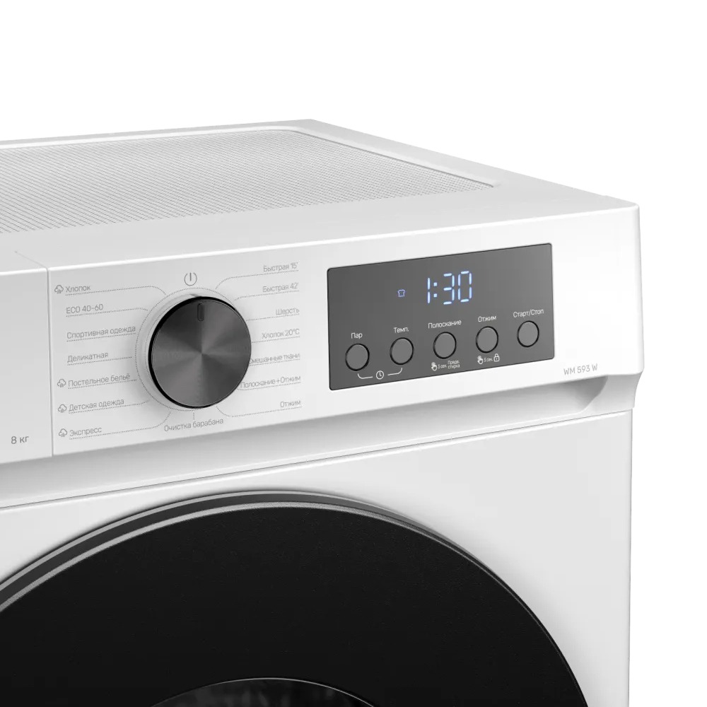 Цвет - Белый; - ; Тип загрузки - Фронтальная; Вид стиральной машины - Автоматическая; Загрузка белья, кг - 8; Максимальная скорость отжима, об./мин. - 1200; Наличие сушки - Без сушки; Тип управления - Электронное; Инверторный двигатель - Да; Обработка паром - Да; Наличие дисплея - Да; Управление со смартфона - Нет; Отложенный старт, ч - 24; Функциональные особенности - Отсрочка запуска; Материал