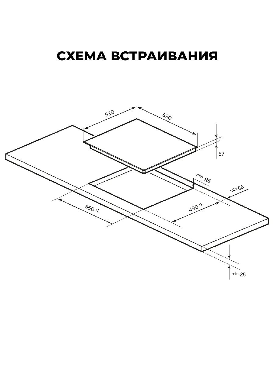 Размеры ниши для встраивания панели, мм 560х490