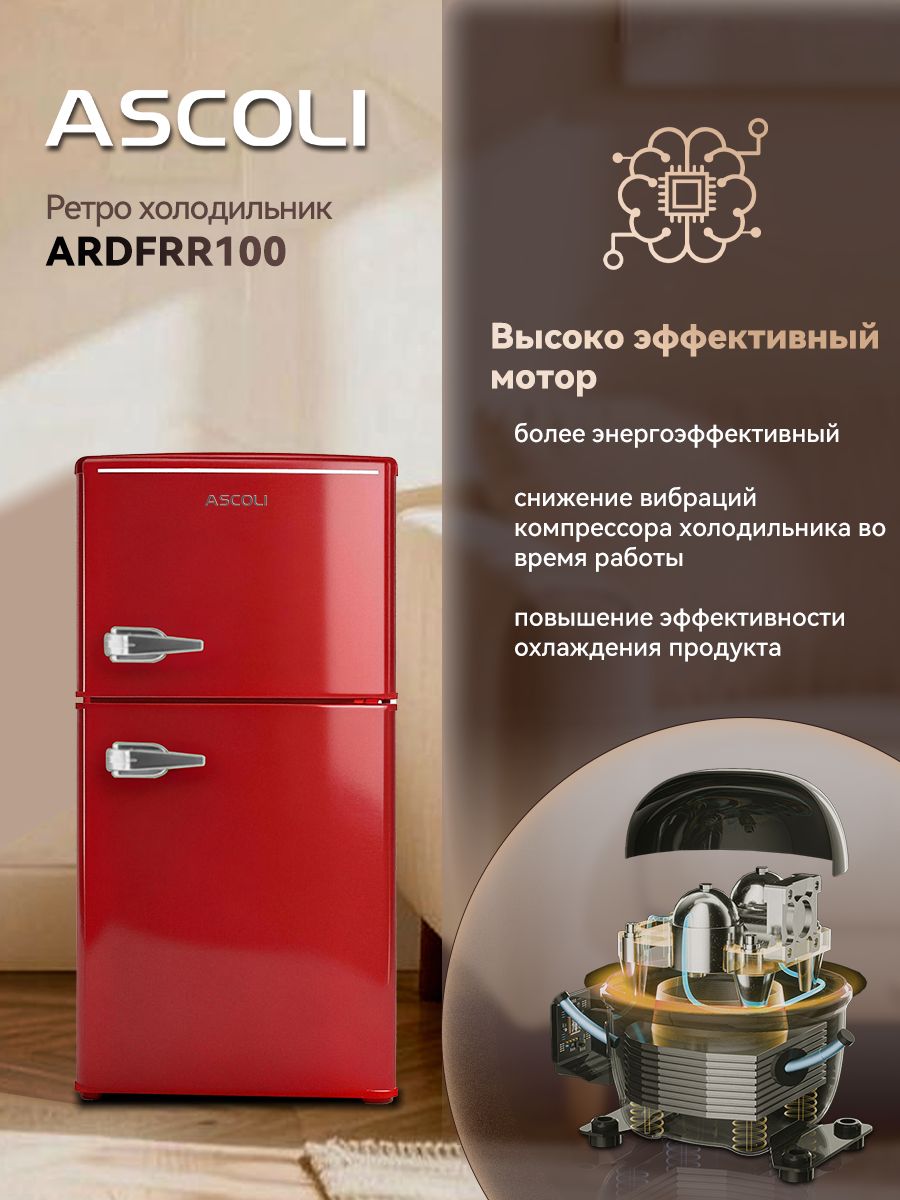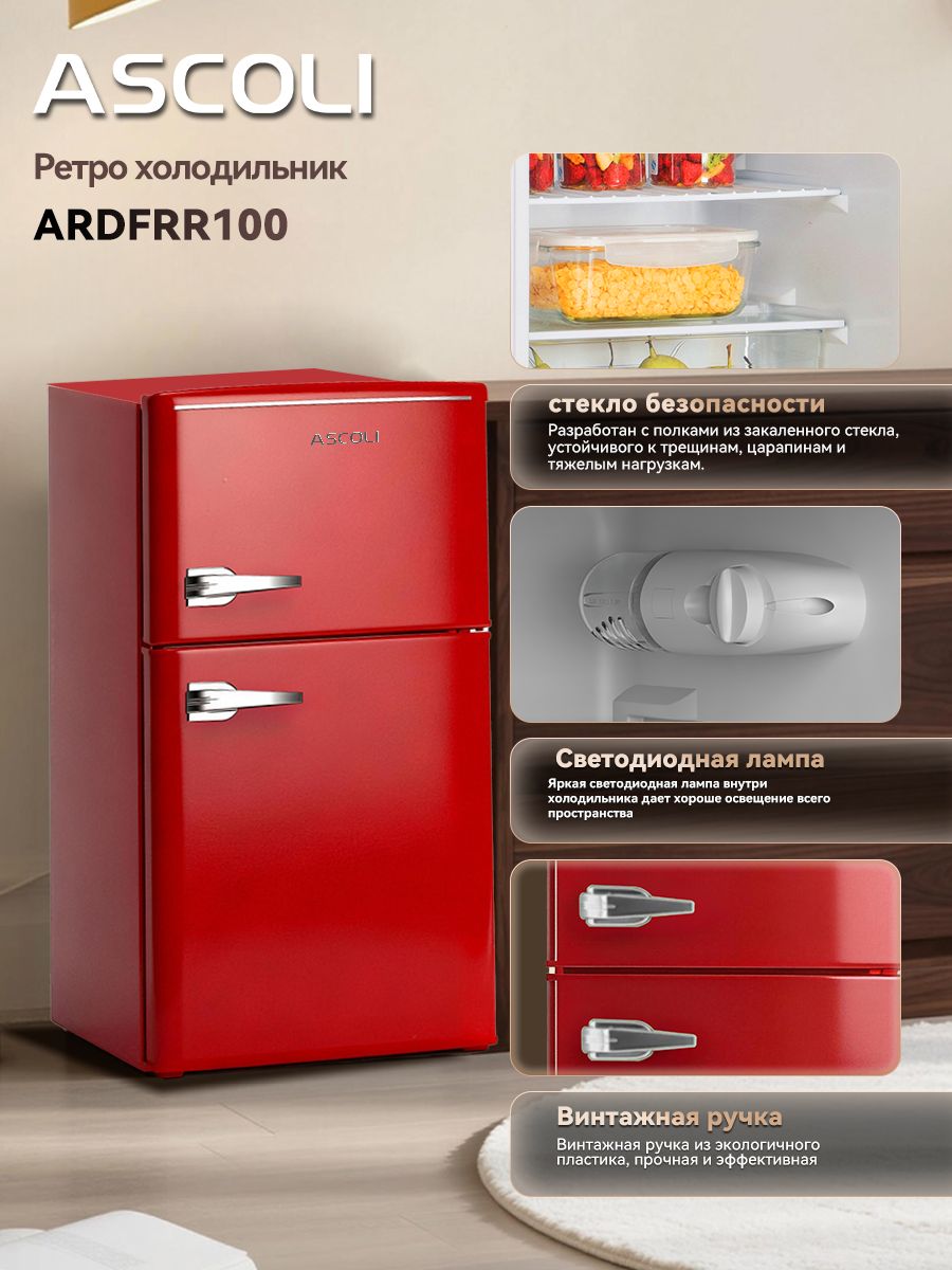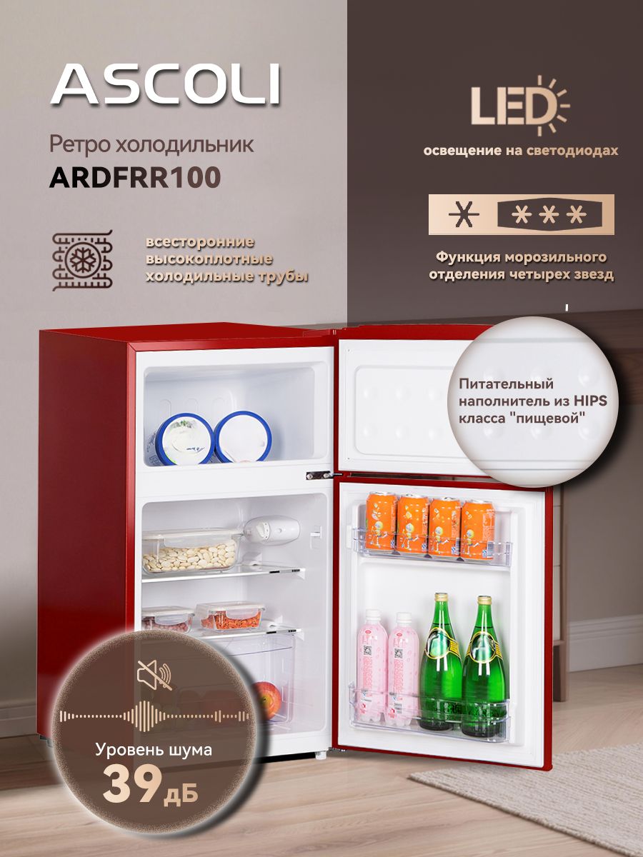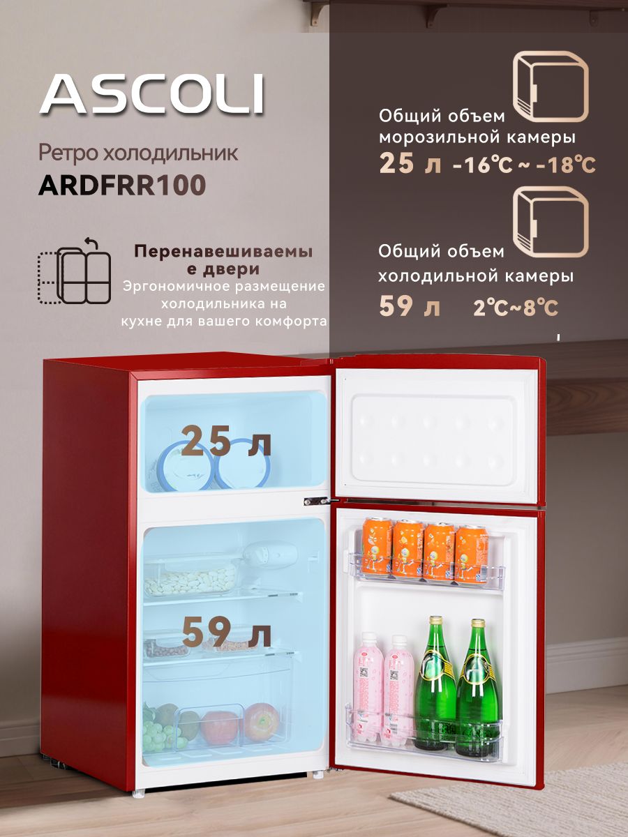 Общий объем, л - 100; Размеры, мм (ШхГхВ) - 453*520*876; Размораживание - Ручное; Класс энергопотребления - A+; Автономное сохранение холода, ч - 7.5; Макс. уровень шума, дБ - 39; Количество камер - 2; Климатический класс - N-ST +16°C / +38°C; Вид компрессора - Классический; Открывание дверей - Вправо; Тип - Холодильник; Цвет - Красный; Вид холодильника - С морозильной камерой; Тип охлаждения - Ко