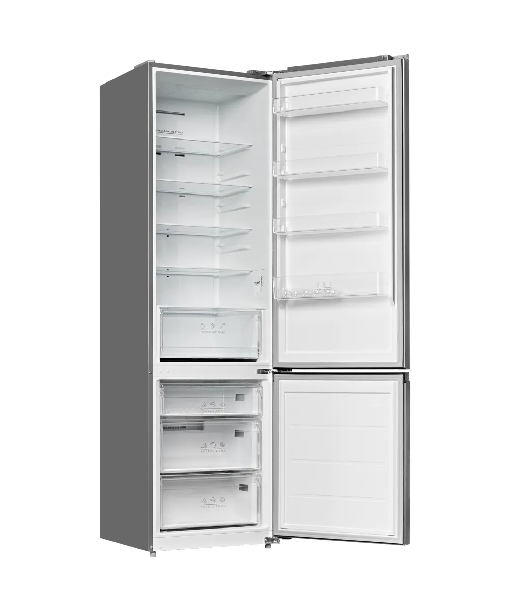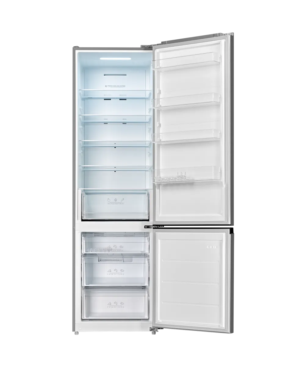 Цвет - нержавеющая сталь; Тип компрессора - INVERTER; Общий/полезный объем, л - 379 / 371; Объем холодильной камеры, л - 274; Полезный объем морозильной камеры, л - 105; Мощность замораживания - 4.5 кг/24 ч; Количество стеклянных полок - 5; Уровень шума, дБ - 35; Управление - электронное; Ширина, см - 59.5; Высота, см - 201; Глубина, см - 57; Total No Frost - есть; LED дисплей - есть; Светодиодное