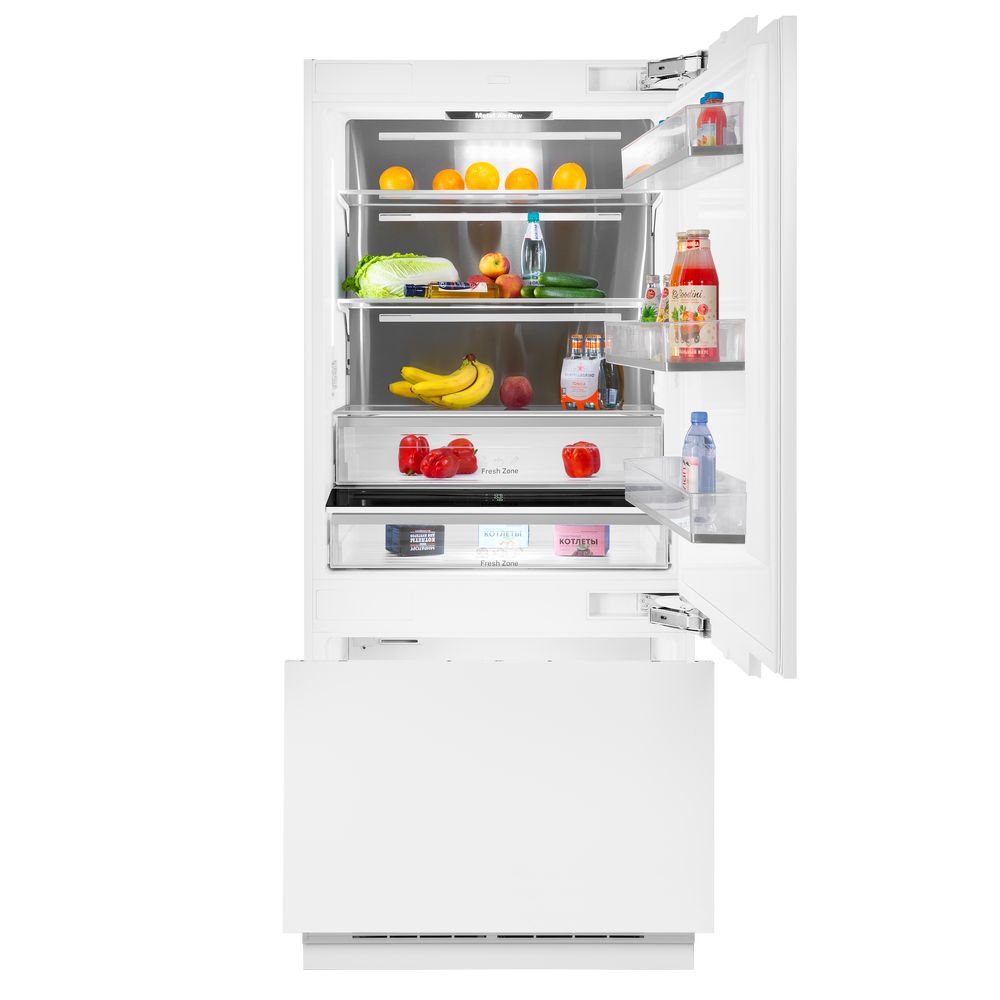 Общий объем, л - 565; Размораживание - No frost; Количество камер - 2; Вид компрессора - Инверторный; Открывание дверей - Выдвижное,Вправо; Зона свежести - Да; Тип - Встраиваемый холодильник; Цвет - Белый; Годовое потребление, кВт ч/год - 419; Вид холодильника - С морозильной камерой; Тип охлаждения - Компрессорный; Количество компрессоров - 1; Расположение морозильной камеры - Снизу; Хладагент -