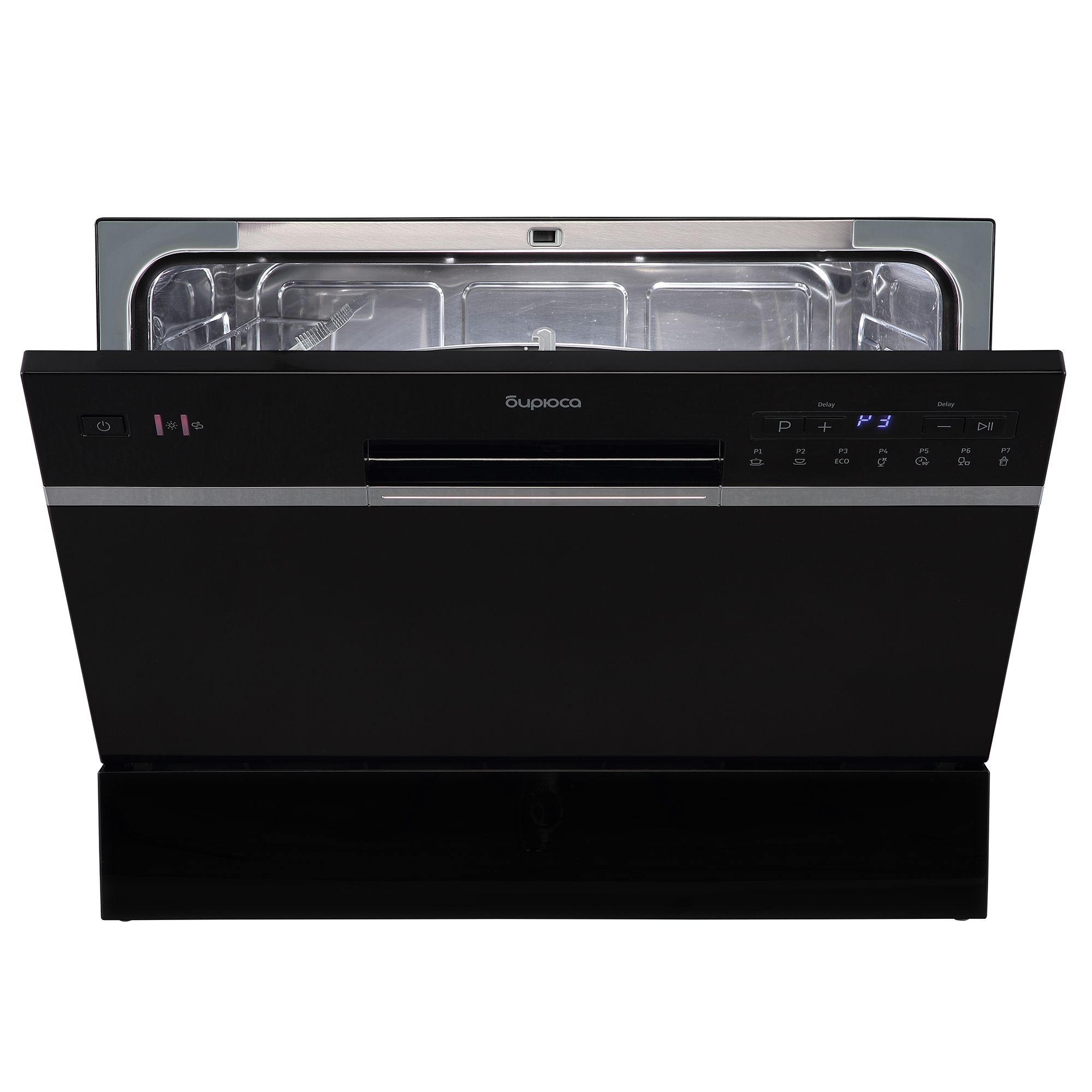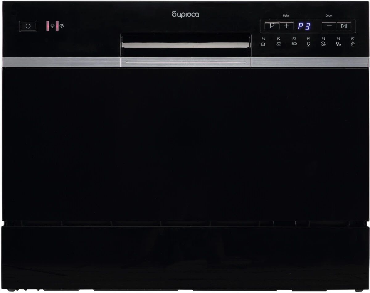 Вместимость, комплектов - 6; Расход воды за цикл, л - 6; Автоматических программ - 7; Класс энергопотребления - A+; Управление - Электронное; Макс. уровень шума, дБ - 49; Тип - Посудомоечная машина; Цвет - Черный; Вид посудомоечной машины - Компактная; Тип сушки - Конденсационная; Потребляемая мощность, Вт - 1380; Ширина, см - 55; Глубина, см - 50; Высота, см - 43.8; Вес товара, г - 23000; Гаранти