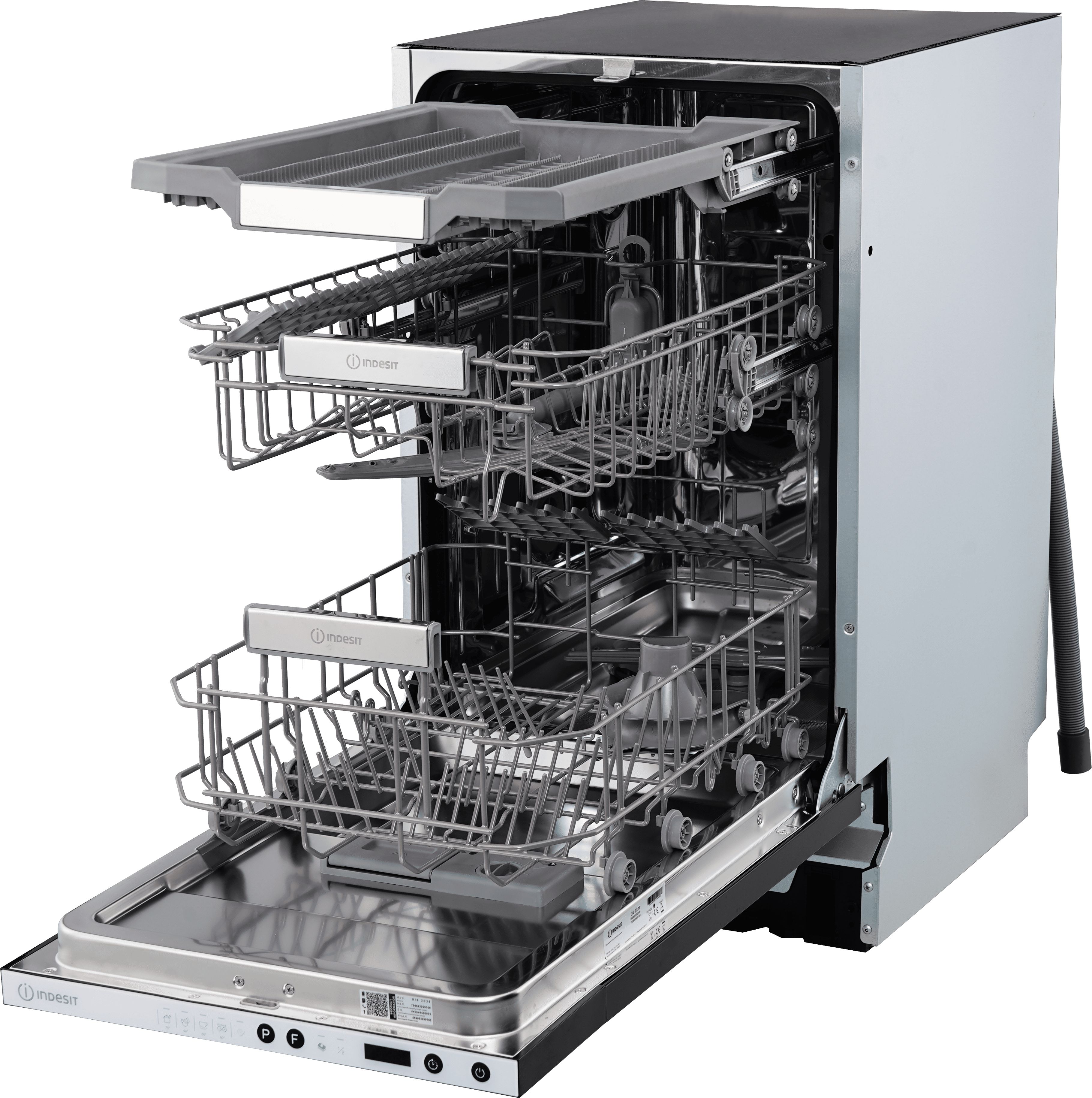 Размер (ДхШхВ), см - 55,8х44,8х81,5; Вместимость, комплектов - 11; Расход воды за цикл, л - 9; Автоматических программ - 5; Класс энергопотребления - A; Класс сушки - A; Управление - Механическое; Макс. уровень шума, дБ - 49; Отложенный старт, ч - 24; Тип - Встраиваемая посудомоечная машина; Цвет - Черный; Вид посудомоечной машины - Узкая (45 см); Тип сушки - Конденсационная; Потребляемая мощность