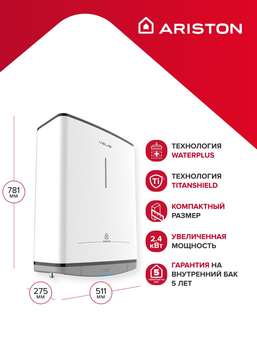 Тип водонагревателя - Накопительный; Объем бака (номинальный), л - 50; Максимальная мощность, кВт - 2.4; Время нагревания, минут - 58; Материал внутреннего бака - Эмалированная сталь; Макс. температура, °С - 75; Защита водонагревателя - От перегрева; Тип - Водонагреватель накопительный; Цвет - Белый; Объем бака (фактический), л - 50; Способ нагрева - Электрический; Количество режимов нагрева - 1;