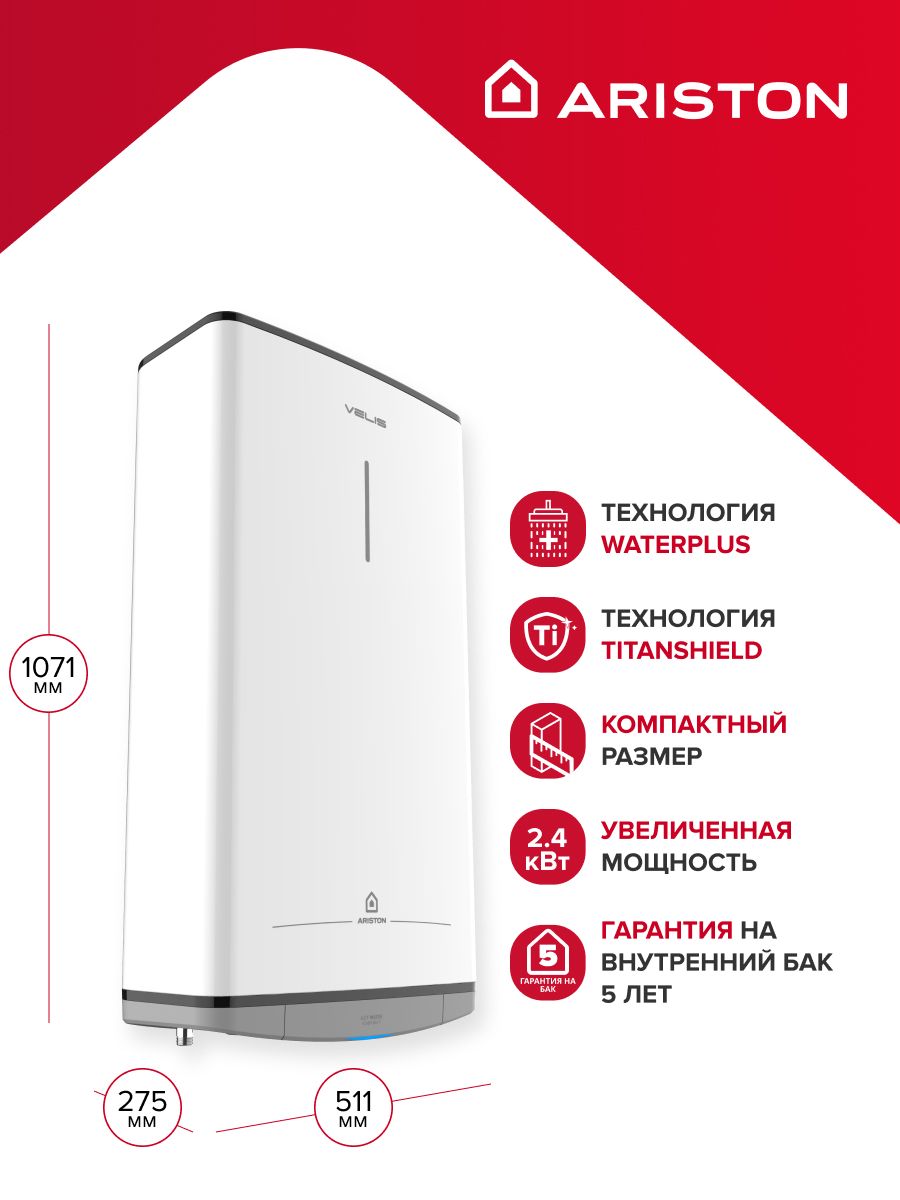 Тип водонагревателя - Накопительный; Объем бака (номинальный), л - 80; Максимальная мощность, кВт - 2.4; Время нагревания, минут - 85; Материал внутреннего бака - Эмалированная сталь; Макс. температура, °С - 75; Защита водонагревателя - От перегрева; Тип - Водонагреватель накопительный; Цвет - Белый; Объем бака (фактический), л - 80; Способ нагрева - Электрический; Количество режимов нагрева - 1;