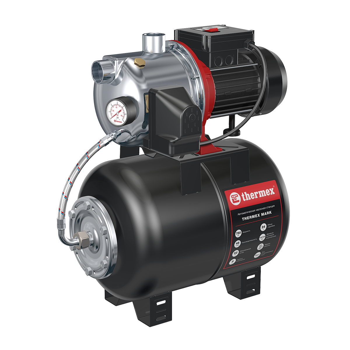 - ; Объем расширительного бака, л - 24; Уровень шума, Дб - 62; Мощность, Вт - 750; Производительность, л/мин - 45; Глубина всасывания, м - 8; Максимальный подъем, м - 52; Диаметр вход/выход, дюйм - 1; Максимальная температура воды, ℃ - 60; Класс IP - IP44; Защита от перегрева - есть; - ; - ; - ; - ; - ; - ;