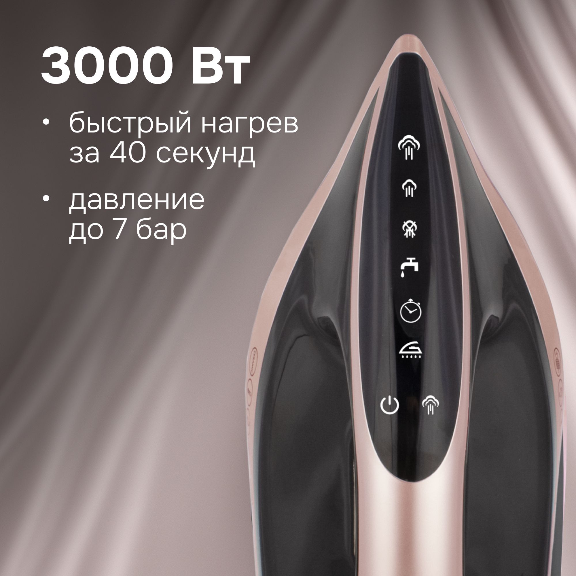 Мощность, Вт - 3000; Паровой удар, г/мин - 400; Подача пара, г/мин - 120; Покрытие подошвы - Керамическое; Особенности утюга, отпаривателя - Защита от накипи,Функция самоочистки; Вертикальное отпаривание - Да; Объем резервуара для воды, мл - 1500; Свойства подошвы - Антипригарное; Беспроводное использование - Нет; Тип - Утюг; Цвет - Черный; Системы защиты - Автоотключение; Длина шнура, м - 2; Разм
