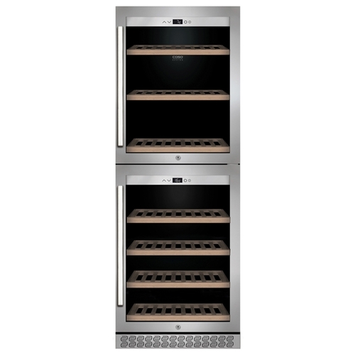 Цвет / Материал покрытия - серебристый / металл; Управление - электронное; Энергопотребление - класс A (161 кВтч/год); Количество компрессоров - 1; Хладагент - R600a (изобутан); Тип винного шкафа - двухтемпературный; Количество камер - 2; Количество дверей - 2; Емкость винного шкафа (в бутылках) - 126; Габариты (ШxГxВ) - 59.5x74x163 см; - ; Дополнительные возможности - индикация температуры; -