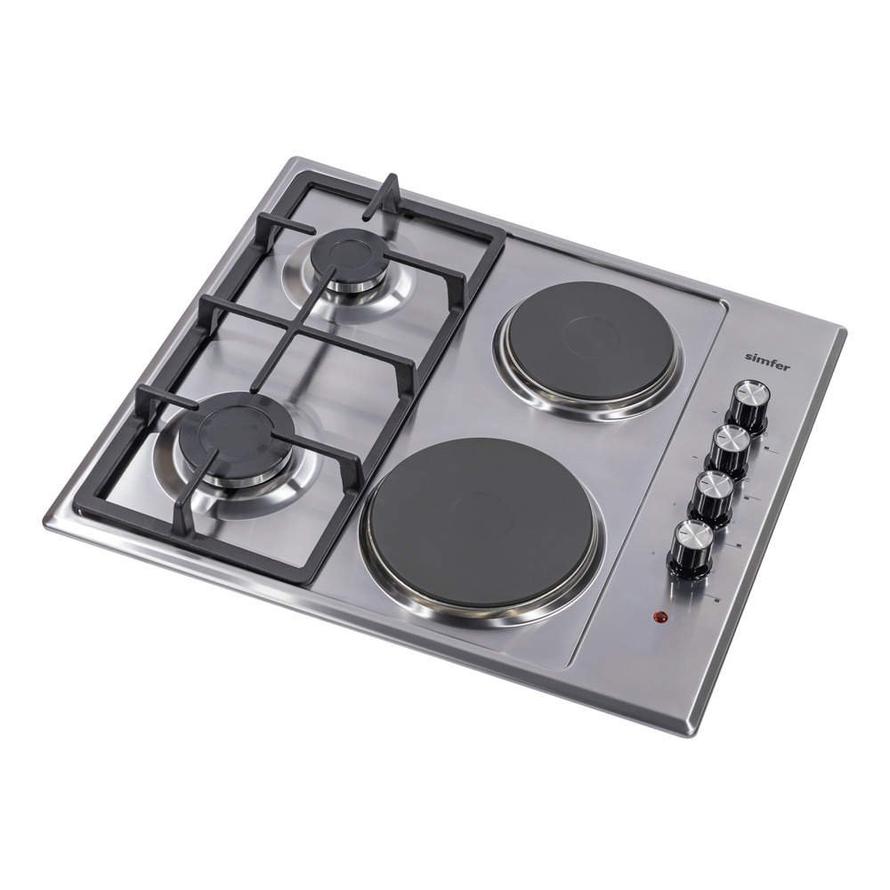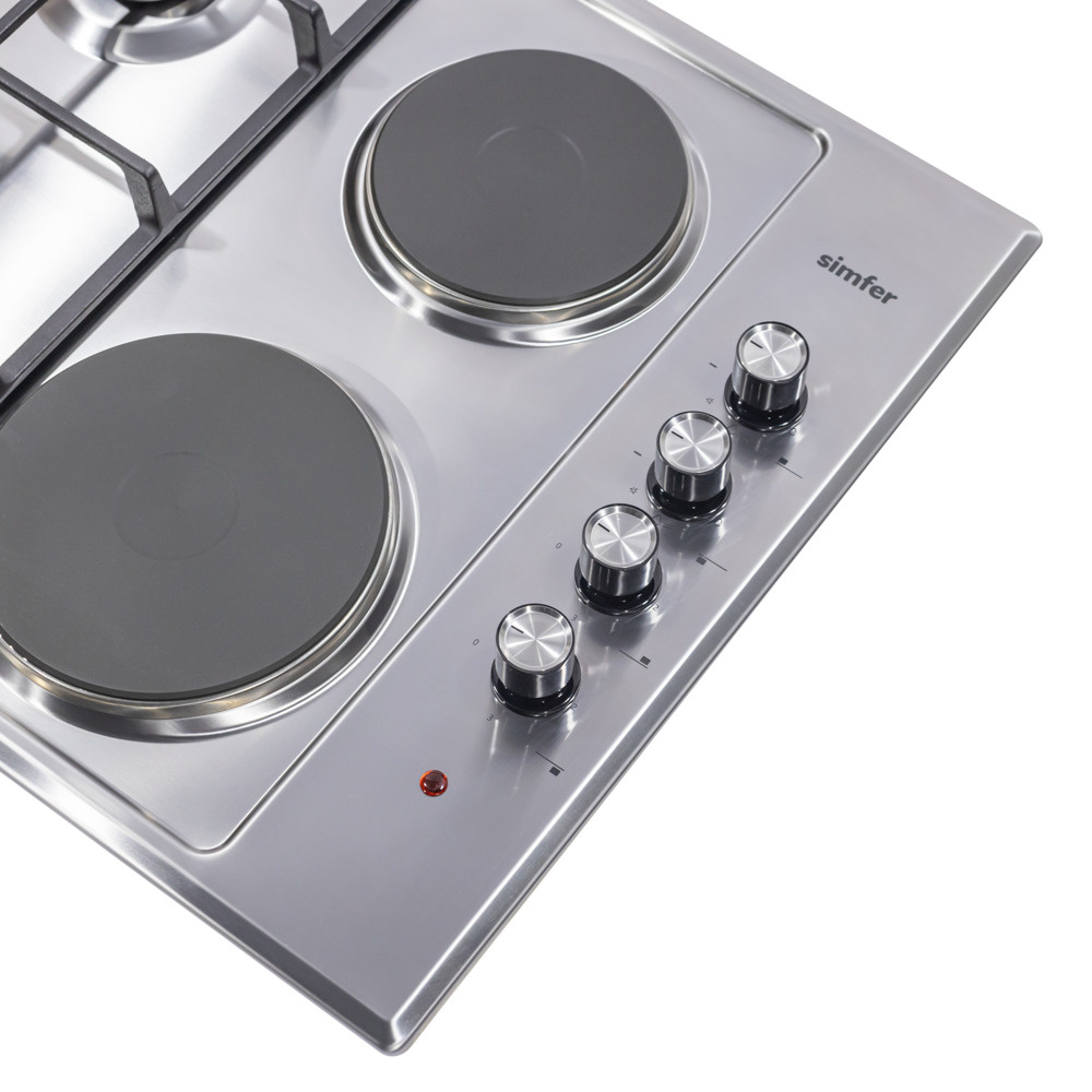 Тип панели (плиты) - комбинированная; Количество конфорок - 4; Материал рабочей поверхности панели - эмалированная сталь; Электроподжиг - есть; Количество электрических конфорок - 2; Тип управления - механическое; Ширина - 60 см; Глубина - 51 см; Вес - 10 кг; Цвет - серебристый;
