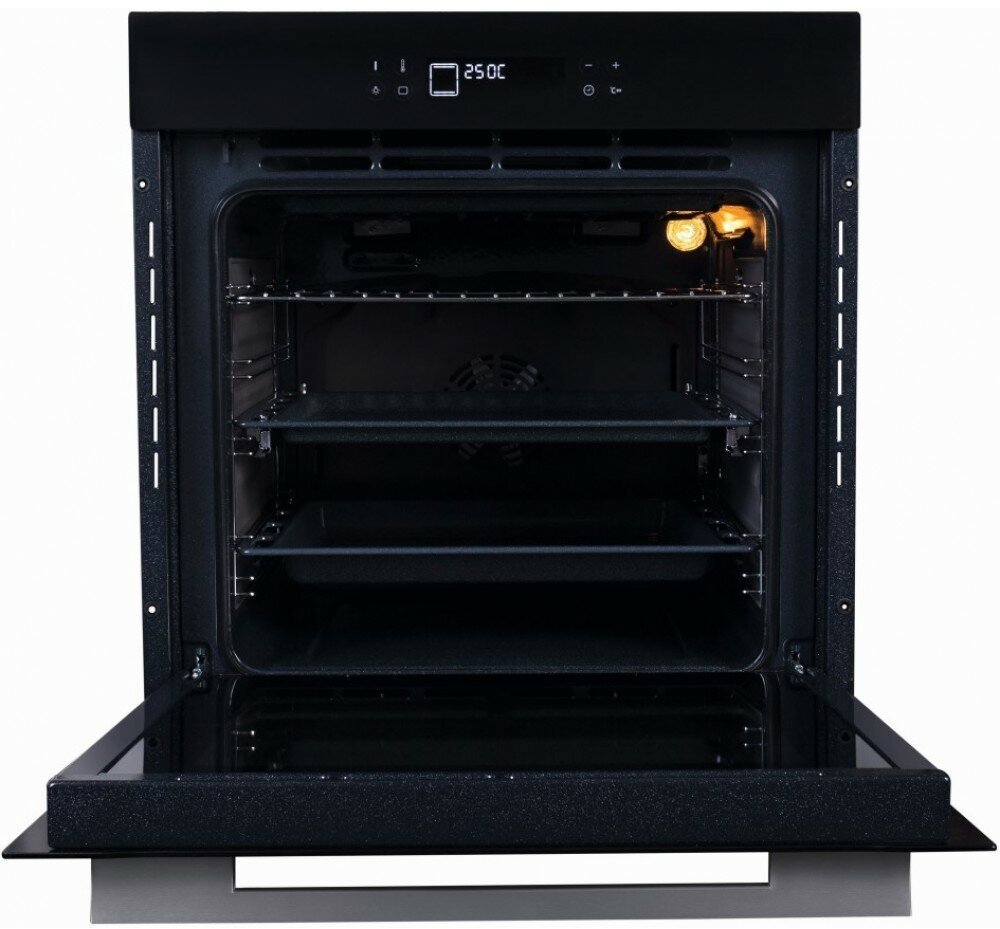 Духовка - электрическая независимая; Объём - 73 л; Размеры (ВхШхГ) - 59.4 х 59.4 x 56.8 см; Максимальная температура - 250 °С; Режимов нагрева - 10; Режимы нагрева - конвекция, большой гриль; Гриль - есть, электрический; Конвекция - есть; Размораживание - есть; Переключатели - сенсорные; Таймер - есть; Дисплей - сенсорный; Вертел - нет; Дверца духовки - откидная; Число стекол дверцы - три; Другие