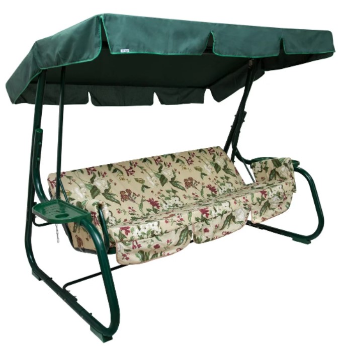 Максимальная нагрузка - 280 кг; Количество мест - 3; Материал каркаса - металл; Диаметр трубы каркаса - 51 мм; Полимерное покрытие - есть; Форма ножек - дугообразная; Регулируемая спинка - да; Раскладываются в кровать - да; В комплекте - матрас, подстаканники; Толщина матраса - 8 см; Размеры качелей (ШxВxГ) - 236 x 166.50 x 138 см; Размеры сиденья (ШxГ) - 178 x 53 см; Размеры спинки (ШxВ) - 178 x