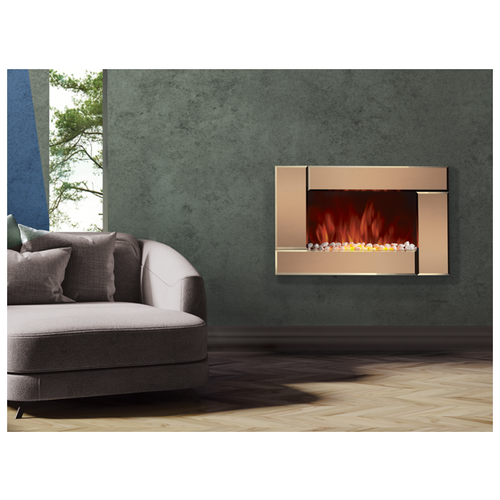 Дополнительная информация зеркальная лицевая панель (настоящее зеркало), инновационная система имитации пламени REAL FIRE PERFECT, Ultra-SLIM глубина; звук потрескивания дров; 2 режима обогрева; регулировка яркости пламени (5 режимов); в комплекте декоративное топливо: белые камни; потребление в режиме эффекта пламени – 10Вт