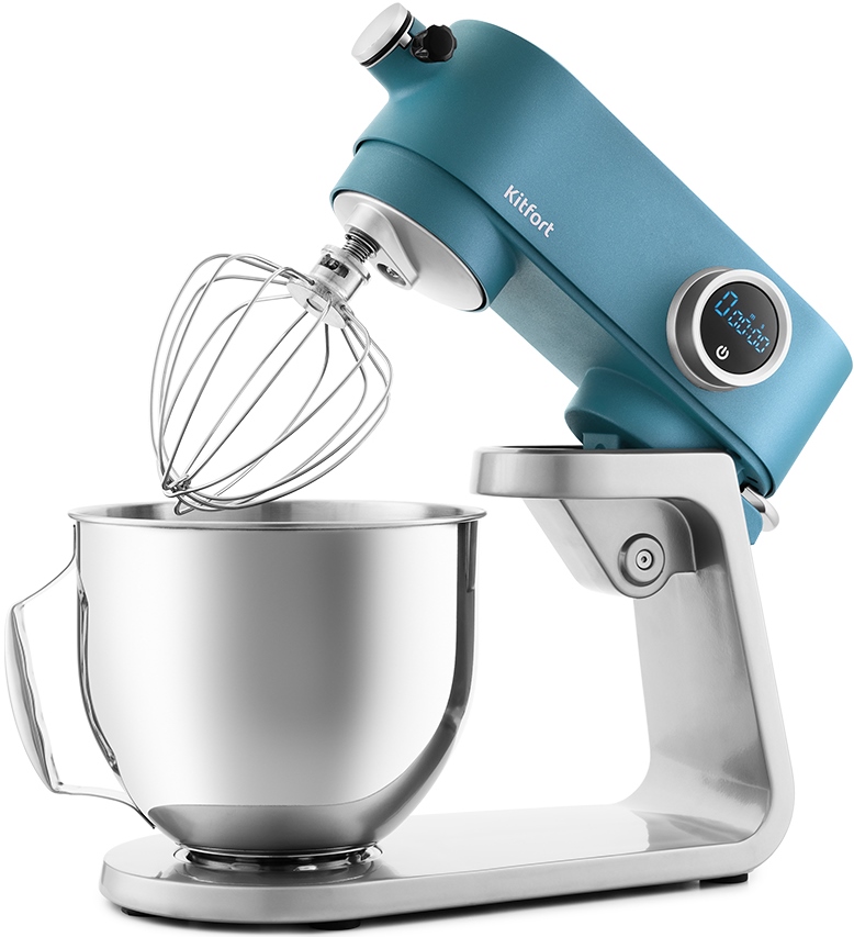 Тип - стационарный; Чаша - 5.20 л, нерж.сталь; Мощность - 800 Вт; Число скоростей - 8; Насадки - крючки для замешивания теста, венчик для взбивания, насадка для приготовления пюре; Количество насадок - 3; Материал корпуса - металл; Планетарное движение - да; Защитная крышка на чашу - есть; Длина сетевого шнура - 0.9 м; Вес - 8.9 кг;