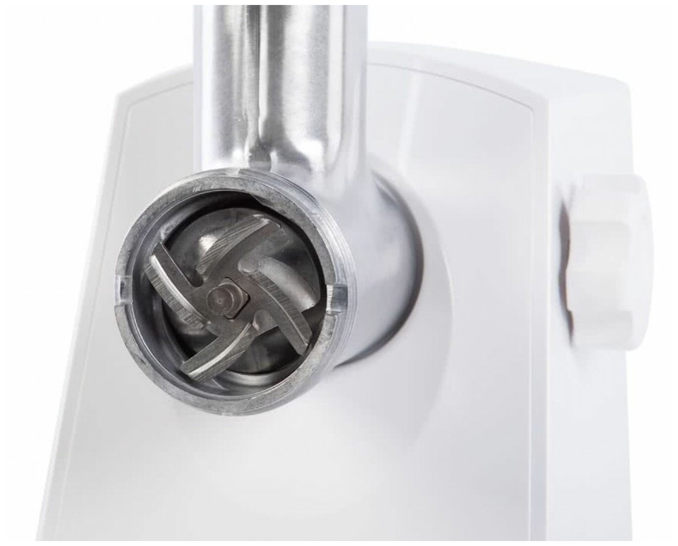 Комментарий: В комплекте две решетки с разным сечением, при малом сечении фарш сминается в кашу, использую только крупное сечение. Нож пока острый, но жилы наматывает. После помывки инвентаря рекомендую протирать решетку и нож насухо, так вы защитите их от ржавчины а свой фарш от черных примесей.Скорость работы позволяет использовать мясорубку не более 15 минут в месяц для семьи из двоих взрослых и маленького ребенка. Шум обычный для такого прибора. Рекомендую к приобретению.