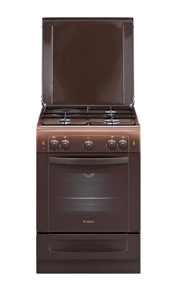 Тип плиты - комбинированная; Материал рабочей поверхности - эмалированная сталь; Материал решетки - сталь; Управление - механическое; Заводская настройка на газ - 20 мбар; Ящик для хранения посуды - есть; Количество газовых конфорок - 3; Электроподжиг - ручной; Газ-контроль конфорок - есть; Количество электрических конфорок - 1; Тип духовки - газовая; Объем духовки - 55 л; Мощность дух