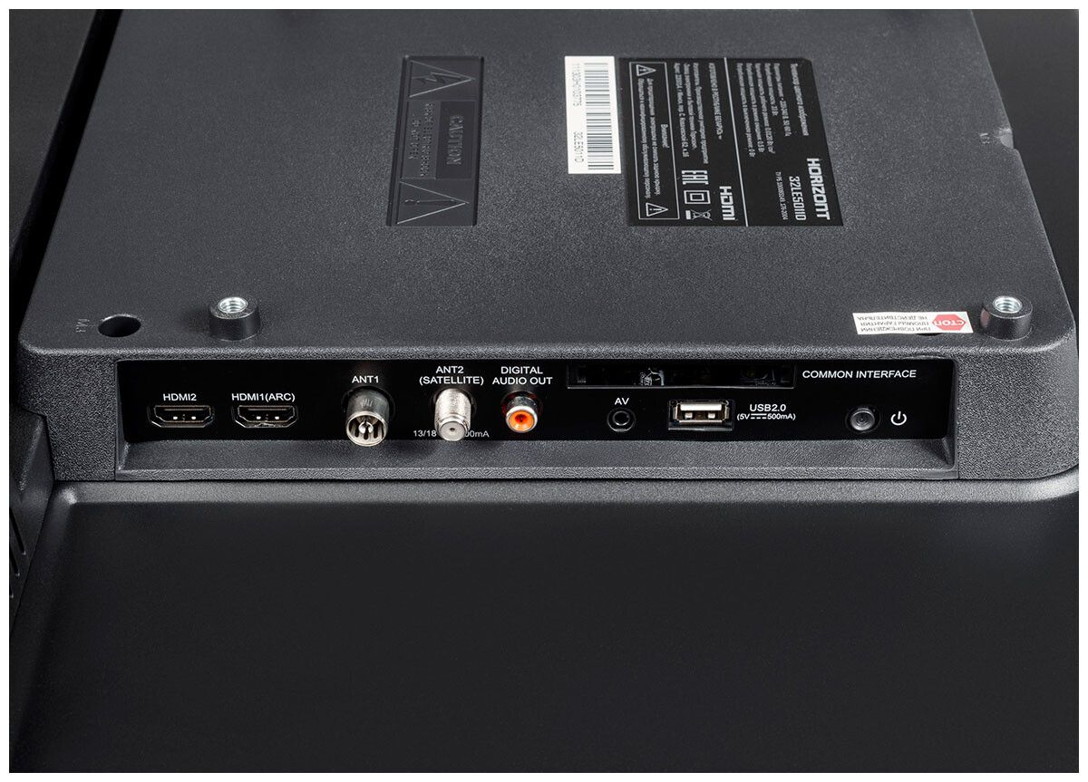 Диагональ - 32" ; Разрешение - 1366*768 (HD) ; Smart-TV - Android 9.0; Цифровой TB-тюнер - DVB-T/T2/C/S/S2 ; Интерфейс - CI/CI+, USB, HDMI ; Мощность аудиосистемы - 16 Вт; Стандарт цифрового телевидения - DVB-T, DVB-T2, DVB-C, DVB-S, DVB-S2; Беспроводные интерфейсы - Bluetooth, Wi-Fi ; Входы/выходы - S/PDIF (оптический), антенный вход, аудиовыход 3.5 мм, RJ-45 (LAN), CI/CI+; Шири