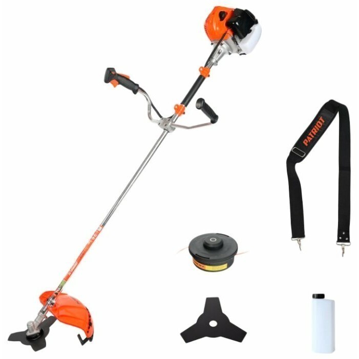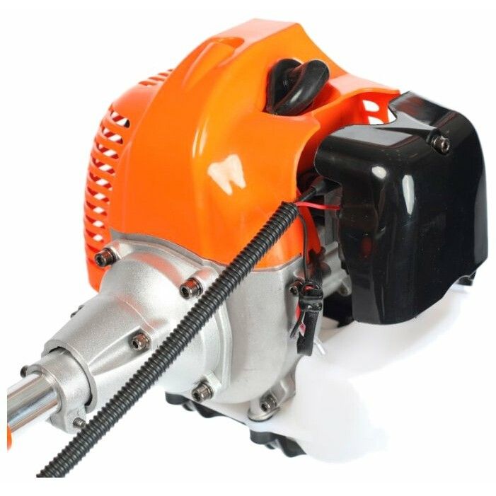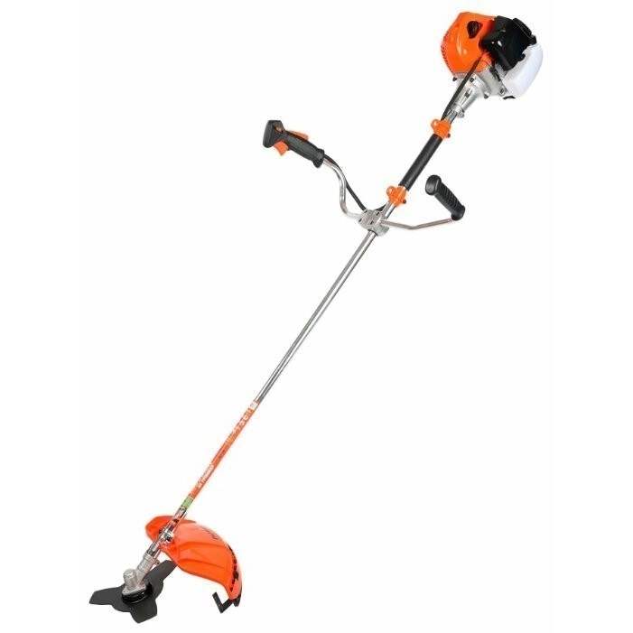 Тип - переносной ; Ширина скашивания - 44 см; Травосборник - отсутствует; Двигатель - бензиновый; Мощность - 2.50 л.с.; Расположение двигателя - верхнее; Рабочий объем - 43 куб.см; Топливный бак - на 1.1 л; Ручка - с регулируемой высотой; Материал деки - пластик; Материал корпуса - пластик; Штанга - прямая; Форма рукоятки - Т-образная (велосипедная); Антивибрационная система - есть; Колеса - отсу