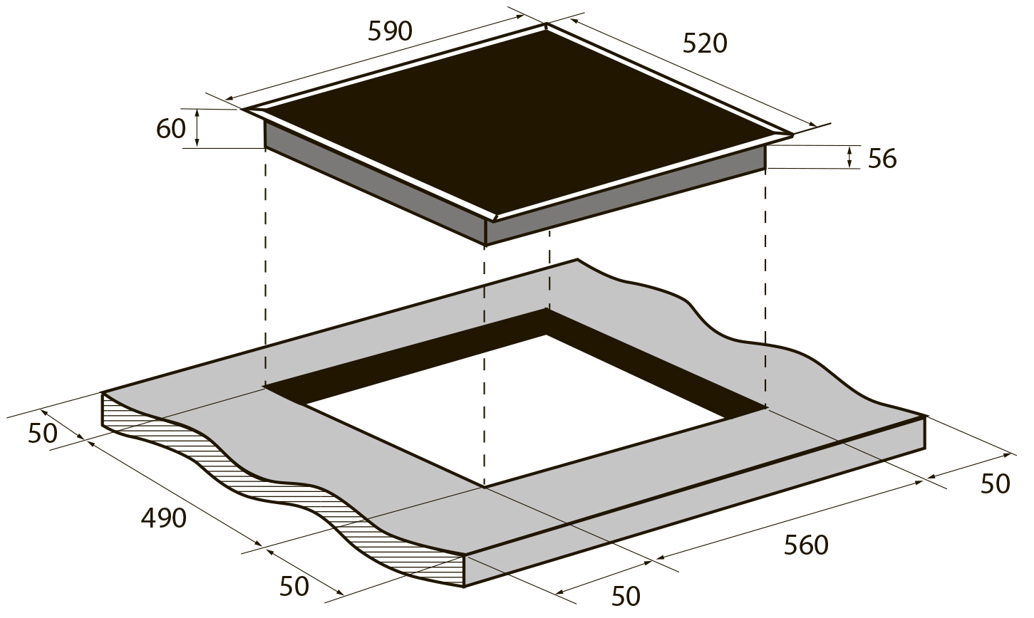Размеры, мм 590x520x55