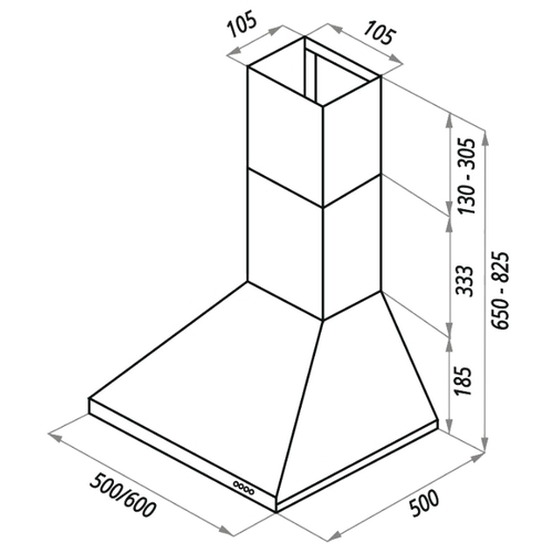 Установка - каминная пристенная; Размеры (ВхШхГ) - 82.50х60х50 см; Минимальная высота - 65 см; Ширина встраивания - 60 см; Диаметр патрубка воздуховода - 100 мм; Материал - корпус: металл; Потребляемая мощность - 118 Вт; Количество двигателей - 1; - ; Режимы работы - отвод / циркуляция; Максимальная производительность - 500 куб. м/ч; Количество скоростей - 3; Управление - электронное, кнопочное;