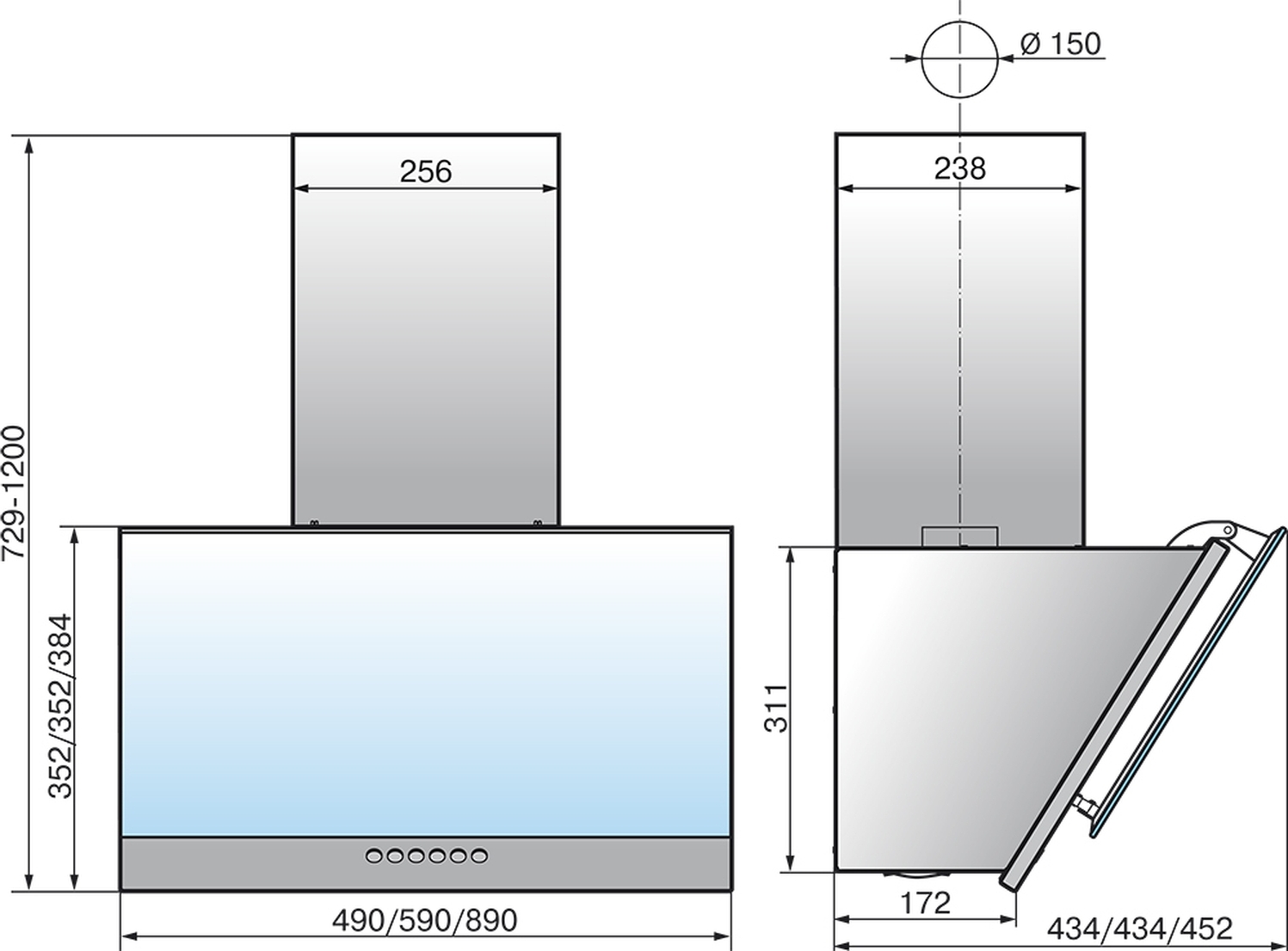 Линейка - Модерн; Установка - каминная пристенная; Наклонная форма - да; Ширина вытяжки - 90 см; Ширина встраивания - 90 см; Диаметр патрубка воздуховода - 150 мм; Материал - корпус: металл/стекло; Потребляемая мощность - 225 Вт; Количество двигателей - 1; - ; Режимы работы - отвод / циркуляция; Максимальная производительность - 700 куб. м/ч; Количество скоростей - 3; Управление - электронное, кн