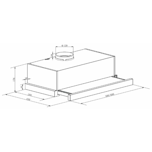 Установка - встраиваемая в шкаф; Тип встраивания в шкаф - выдвижная; Размеры (ШхГ) - 60х28 см; Минимальная высота - 17.6 см; Ширина встраивания - 60 см; Диаметр патрубка воздуховода - 120 мм; Материал - корпус: металл, панель/окантовка: стекло; Потребляемая мощность - 103 Вт; Мощность двигателя - 100 Вт; Количество двигателей - 1; Режимы работы - отвод / циркуляция; Максимальная производительность